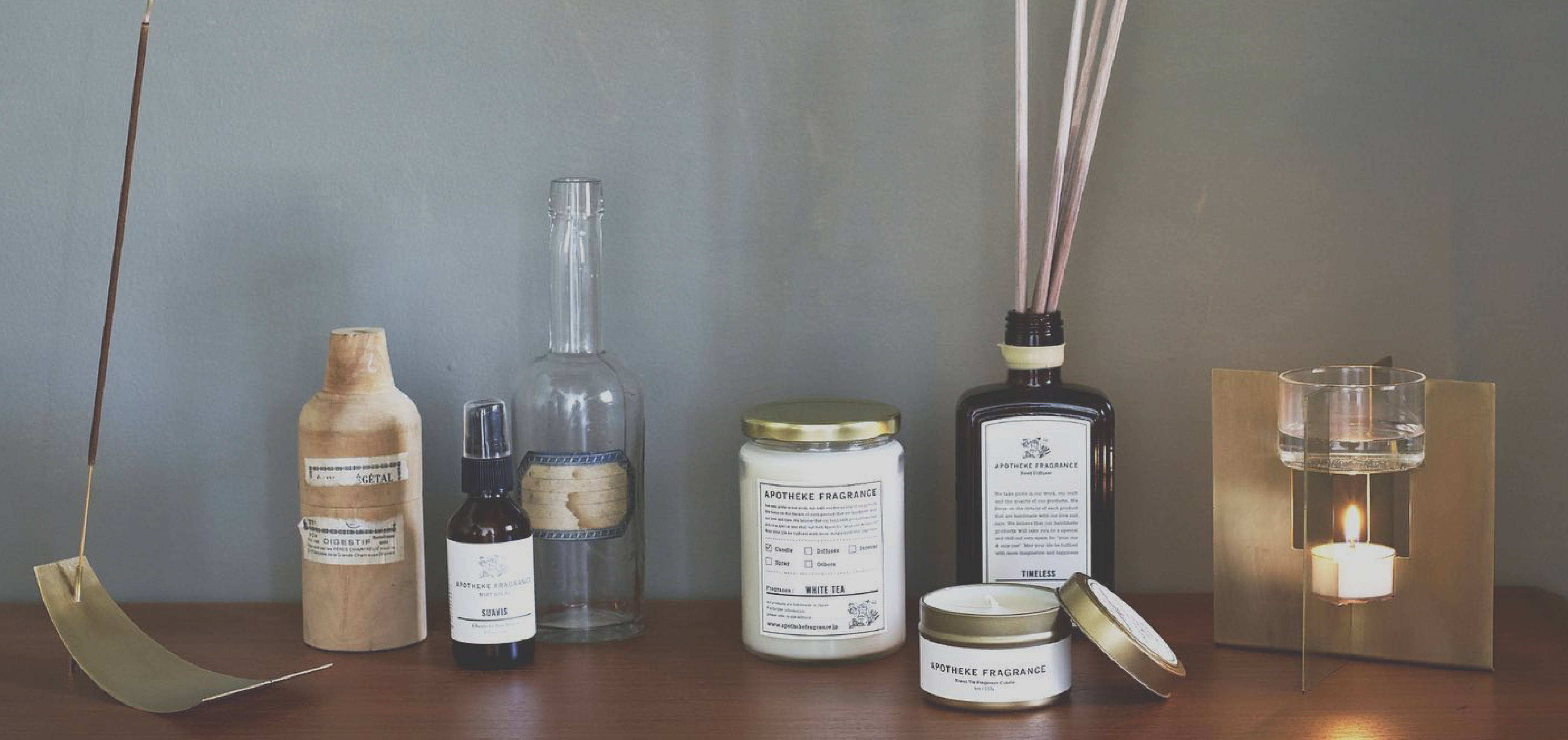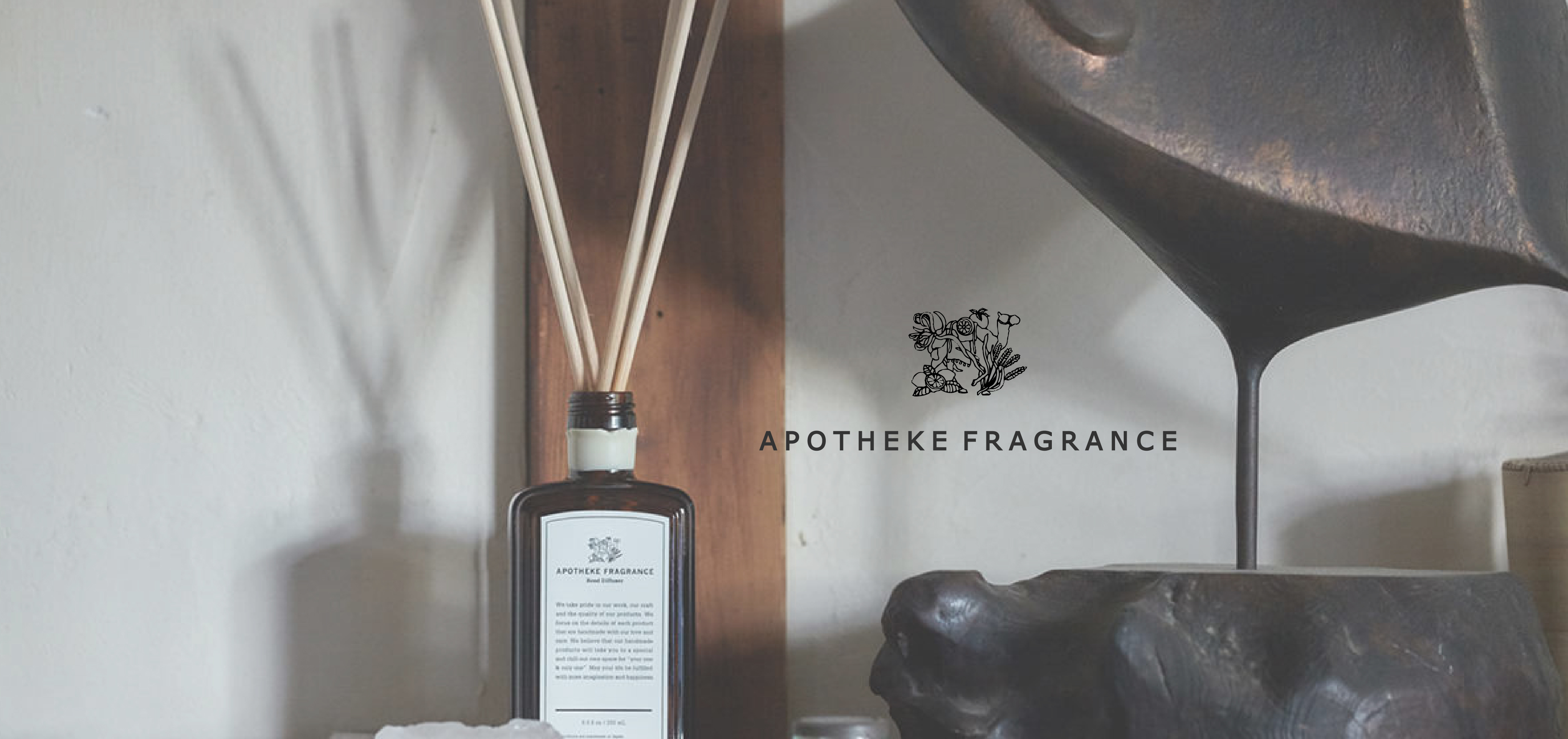 APOTHEKE 意思是「混合香草跟香料的地方」,德文則是「藥房」之意,希望購買 APOTHEKE FRAGRANCE 的人們可以像是去藥房買到良藥一樣,帶來療癒的效果。品牌概念”SCENTERIOR”為 SCENT(香氣) 和 INTERIOR(室內裝飾)結合,希望能將香氣似藥品般植進生活的一部分,針對室內、睡眠、衛浴空間、工作思考時,在每個時刻都能找到相對應的治療氣味
