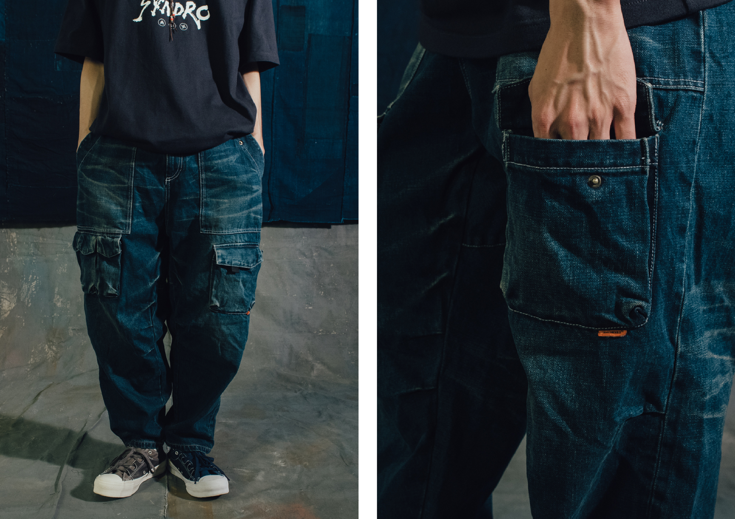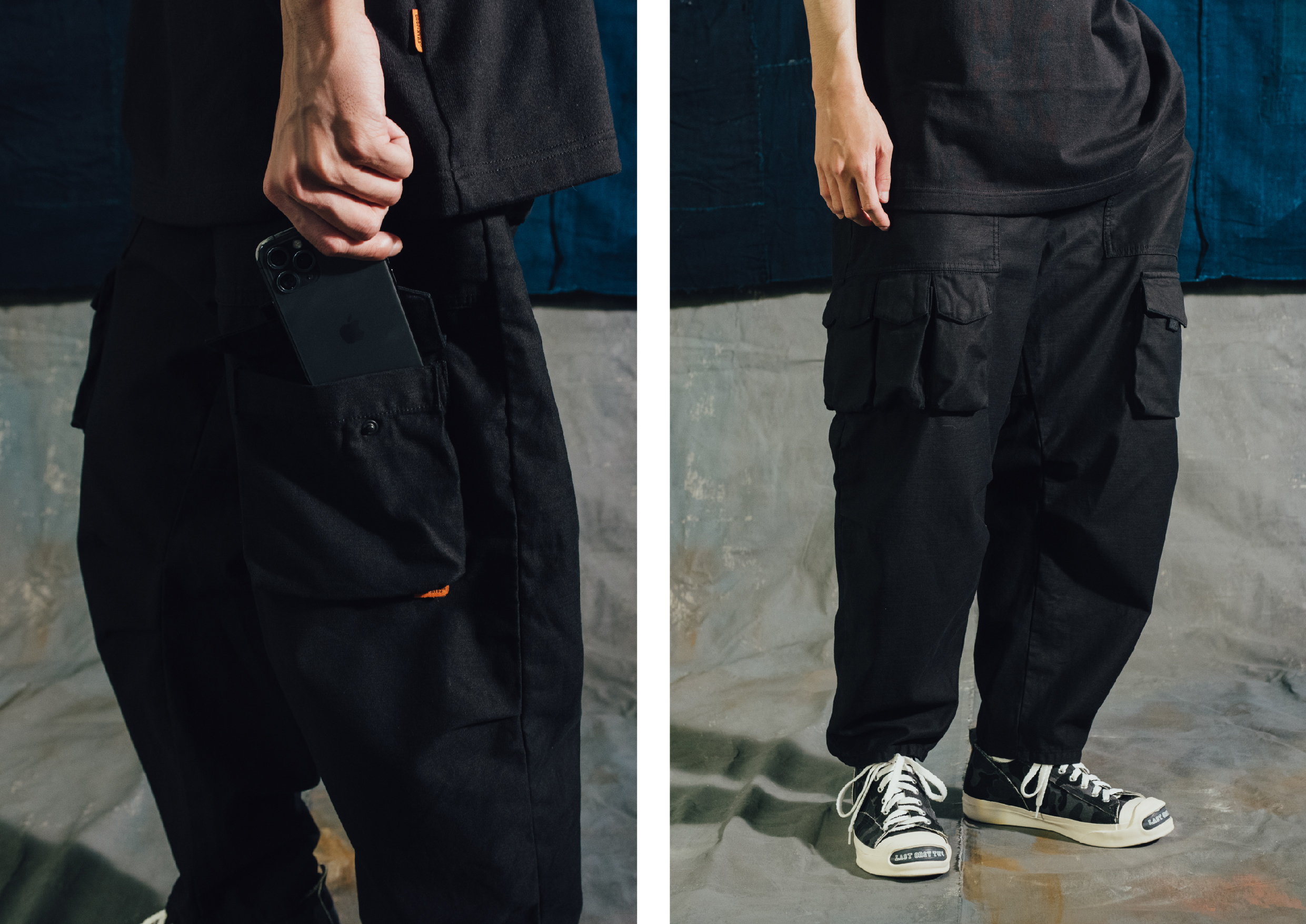 PATCHWORK POCKET TAPERED PANTS
