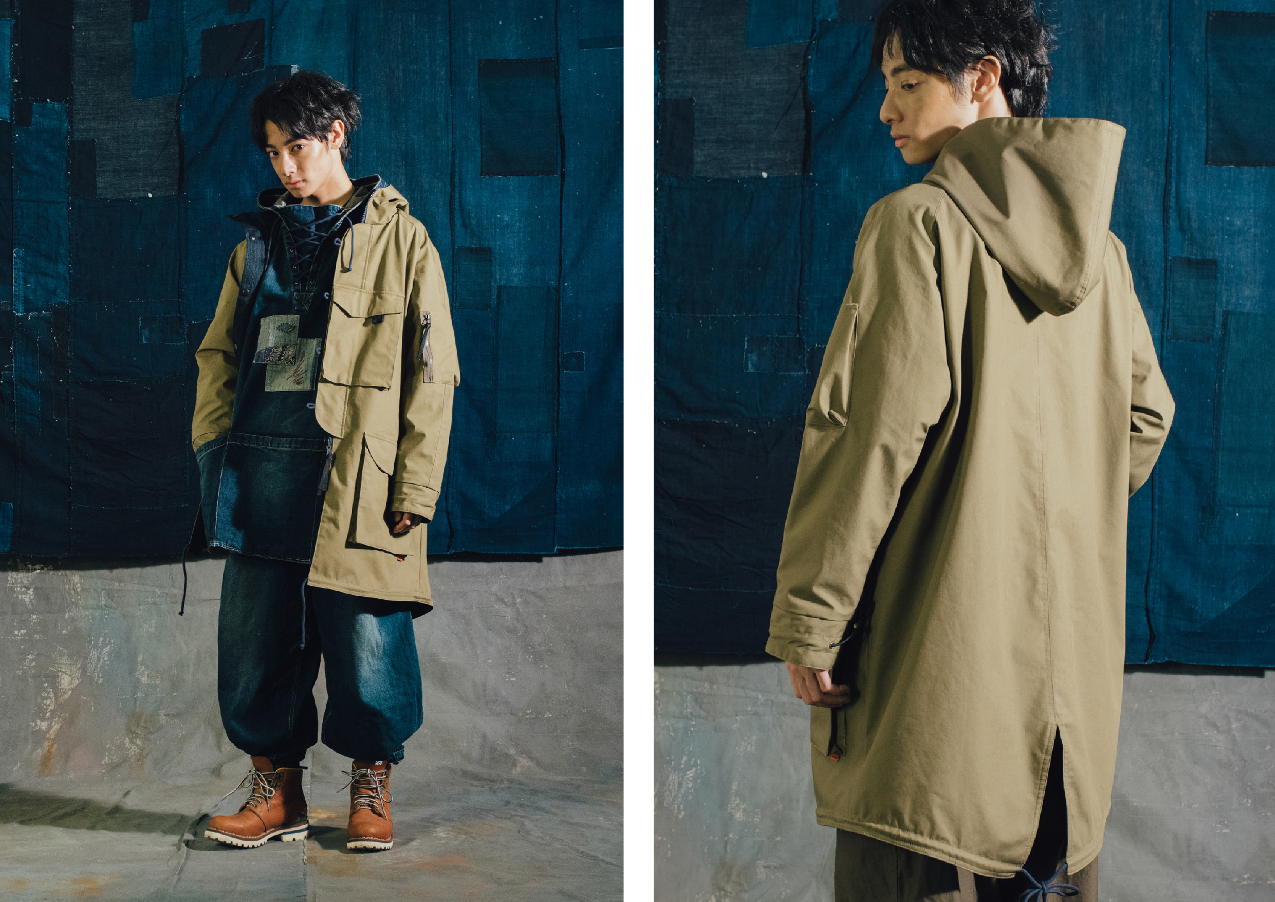 in and out 2-way parka with both side Japan fabric.