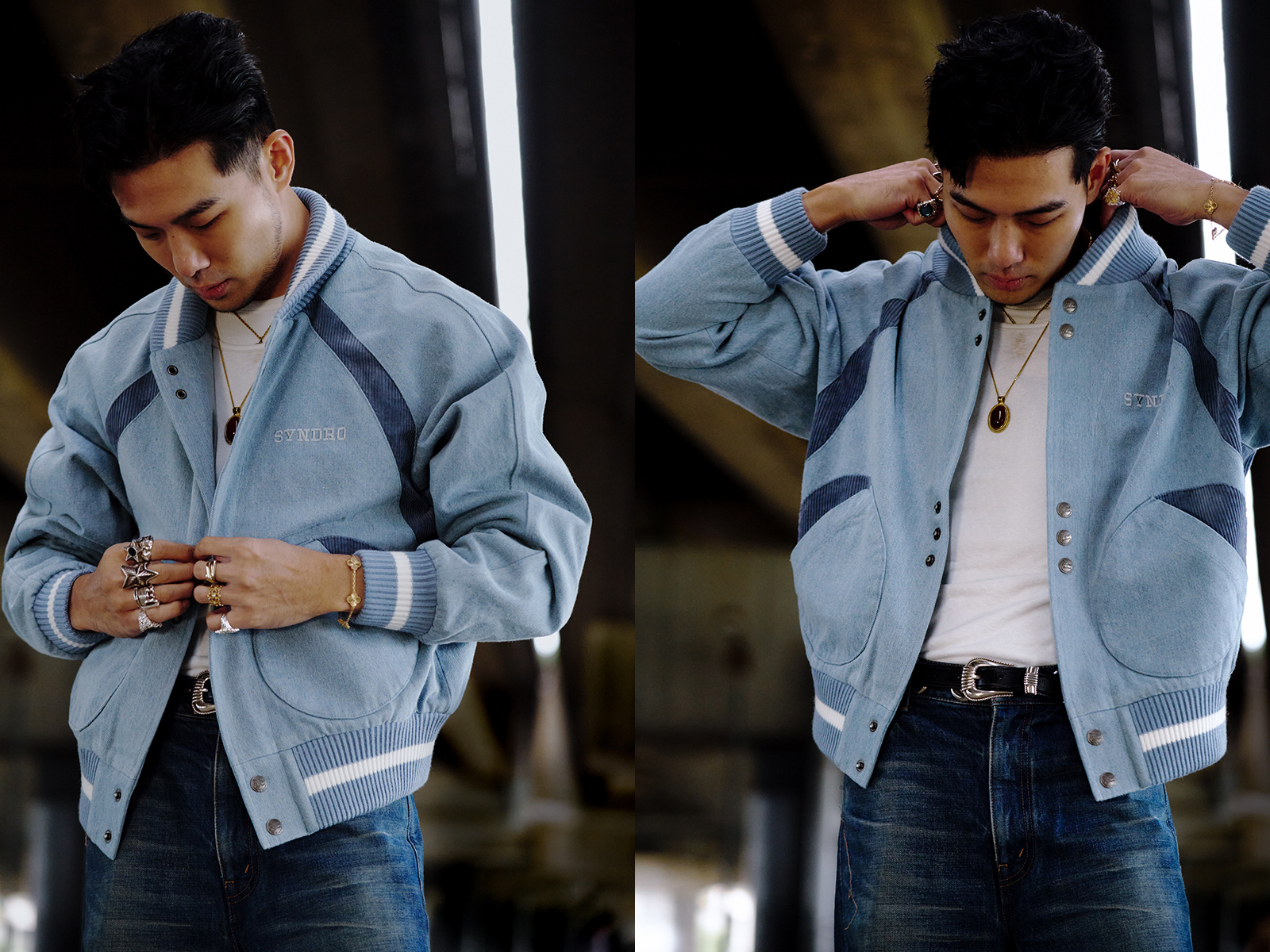 由 GQ Taiwan 編輯長 Kevin 與 SYNDRO 總監 Shinway 共同主導的聯名企劃,以運動時尚為主軸,將 SYNDRO 與 GQ 重點關注的單寧元素融入設計,推出 DENIM VARSITY JACKET 與 DENIM BASEBALL JERSEY 兩款來自運動員的穿著單品。