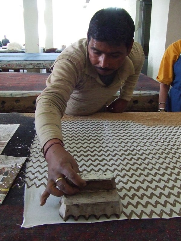 印度知名工藝,在木塊上雕出圖型,將雕板蘸以染料蓋於布料。
