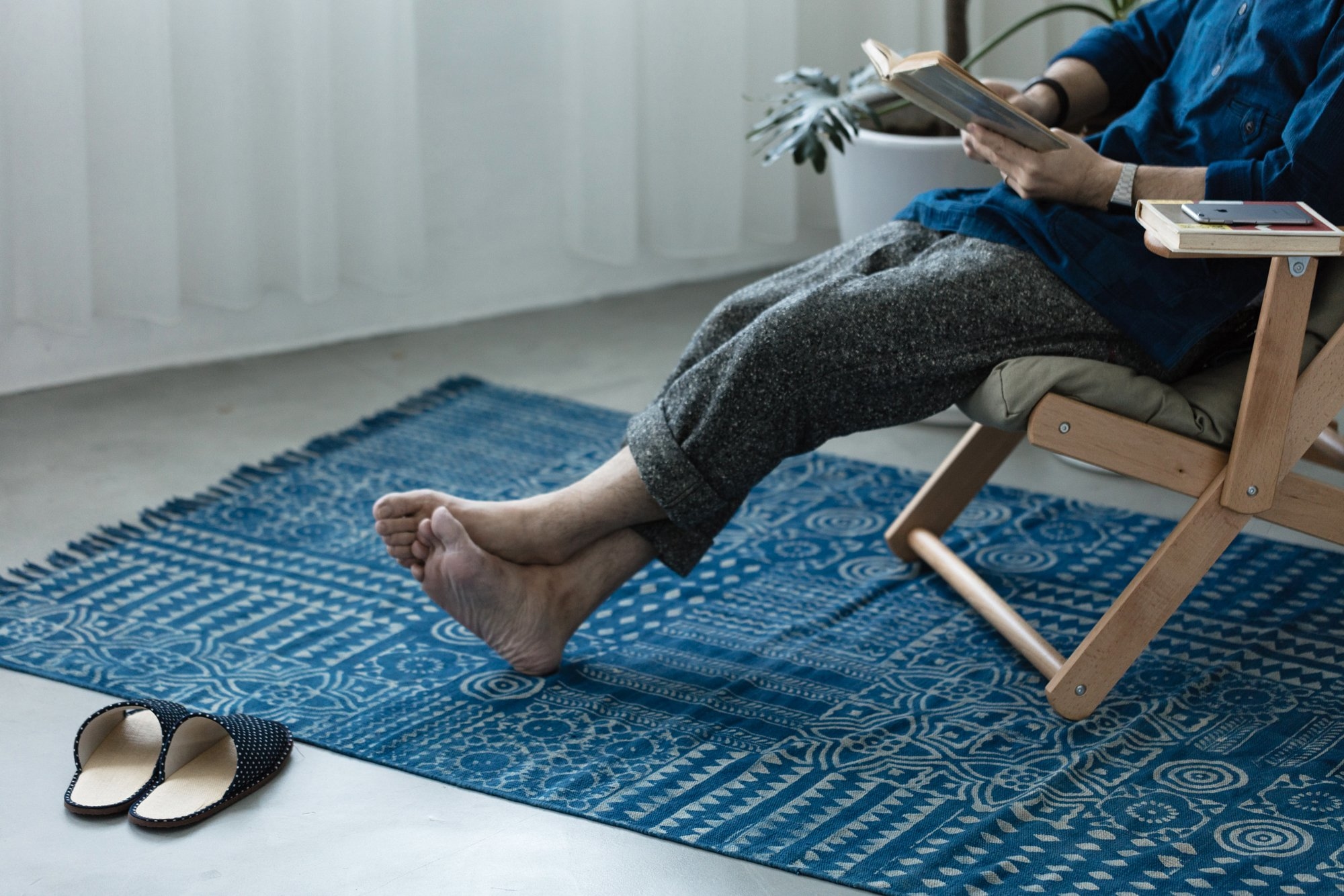 SYNDRO HOUSE 特別引進印度傳統藍染飾毯,傳承古法的染製工藝,與民族氛圍濃厚的花紋,是您居家空間畫龍點睛的神來一筆。