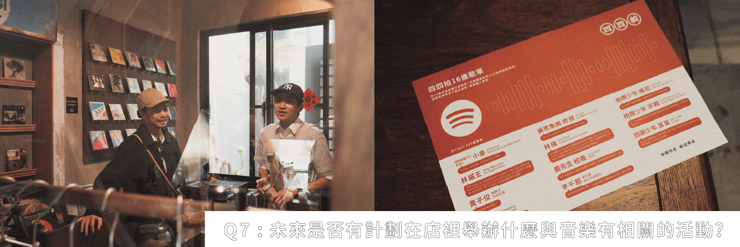四四拍一直在做的都是跟日常生活結合,可以讓大眾更接觸電子音樂的活動;店內也有設計給單純來用餐的客人,閒暇之餘可以玩的小遊戲「16歲歌單」。而我自己一直嚮往做的是偏向獨立的夜晚音樂派對,受眾也會比較不同;加上近幾年觀察到,台南幾乎沒有適合播放 DJ 的獨立音樂空間,因此很希望可以找到一個地方,創造那樣的空間,從全台灣找 DJ 來玩,讓台南年輕人也可以有這樣的感受。