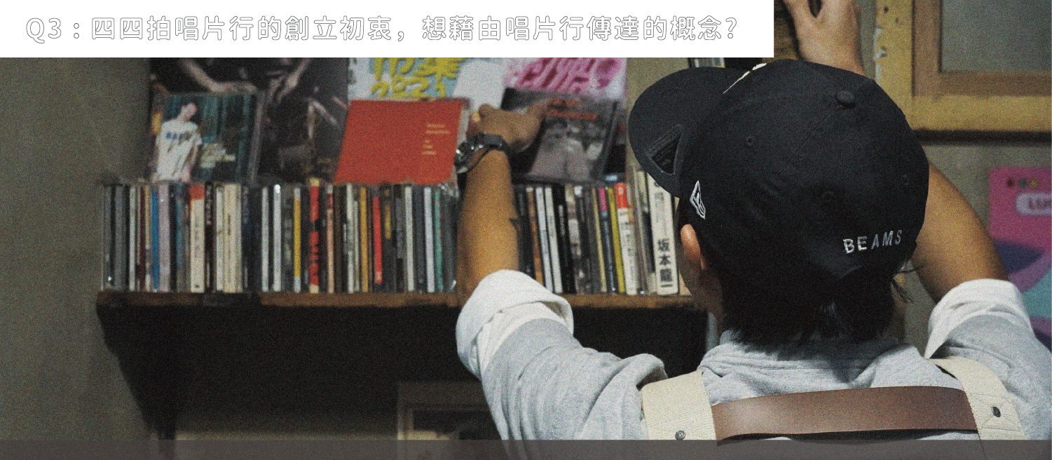 我們持續在推廣電子音樂跟 DJ 文化,加上買唱片、黑膠的習慣一直都有,後來四四拍搬到現在這個位置,剛好店內有一個小小的空間,當用餐區域有點奇怪,做DJ教室又太直接,就把一直想做唱片行的想法實踐。現代唱片行一間一間倒,年輕人不太知道什麼是逛唱片行的感覺,這裡雖然小小的,但那種實際摸到的感受還是很不一樣。