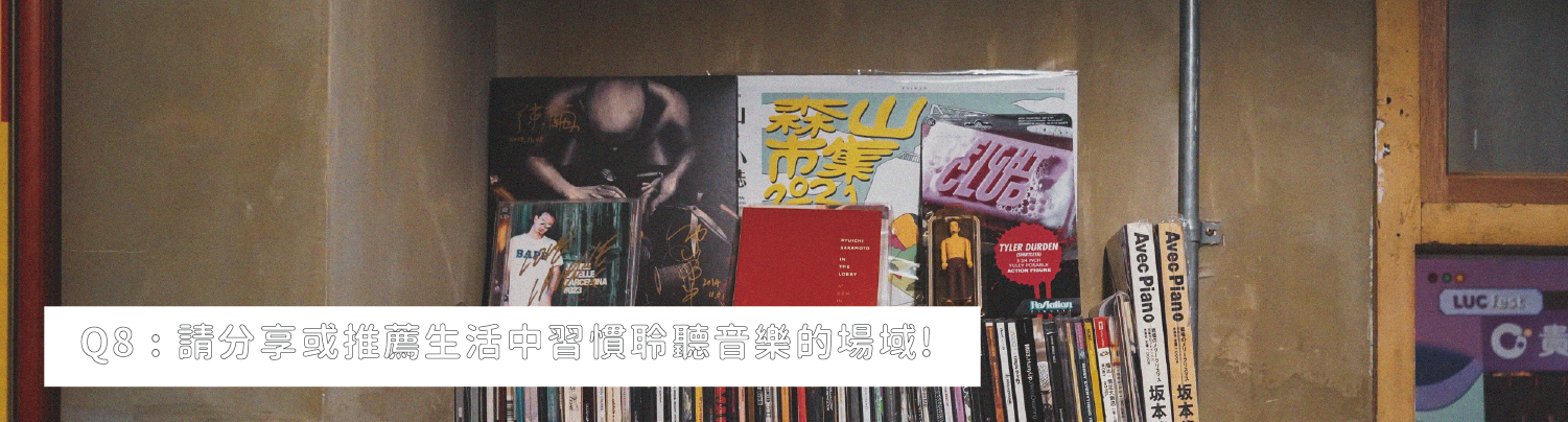 我的成長背景在東港,國小的時候那裡沒有唱片行,也不知道什麼是唱片行。印象中,是夜市會有一攤擺滿五顏六色的卡帶的攤位,每次去逛,老闆都會說「你們小朋友聽的在那排!」,靠過去看都是七龍珠、灌籃高手等等,就會吵著要我媽買。後來鎮上開了一間賣 3C 產品的店,也有賣唱片,就開始很常去一張張專輯看。