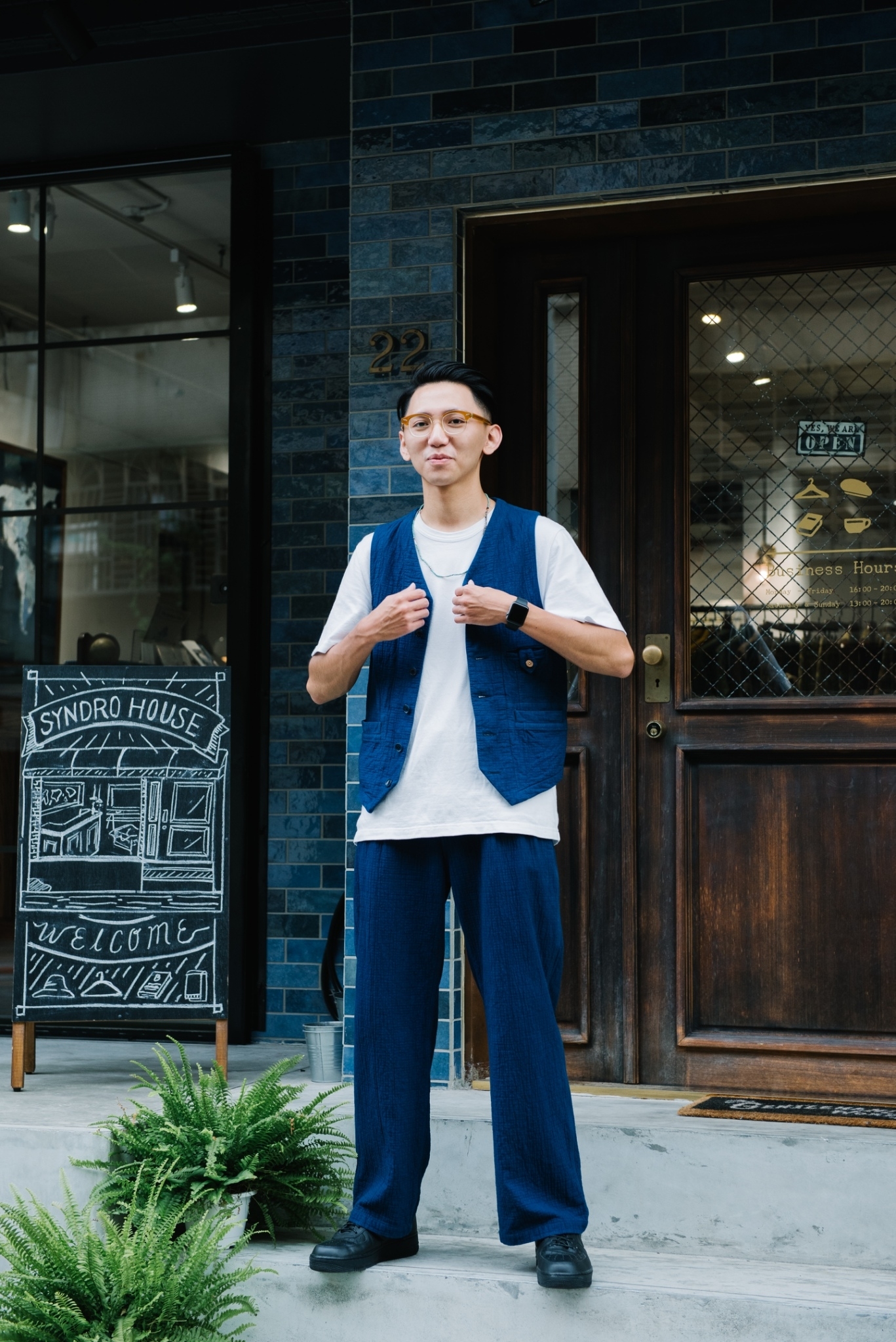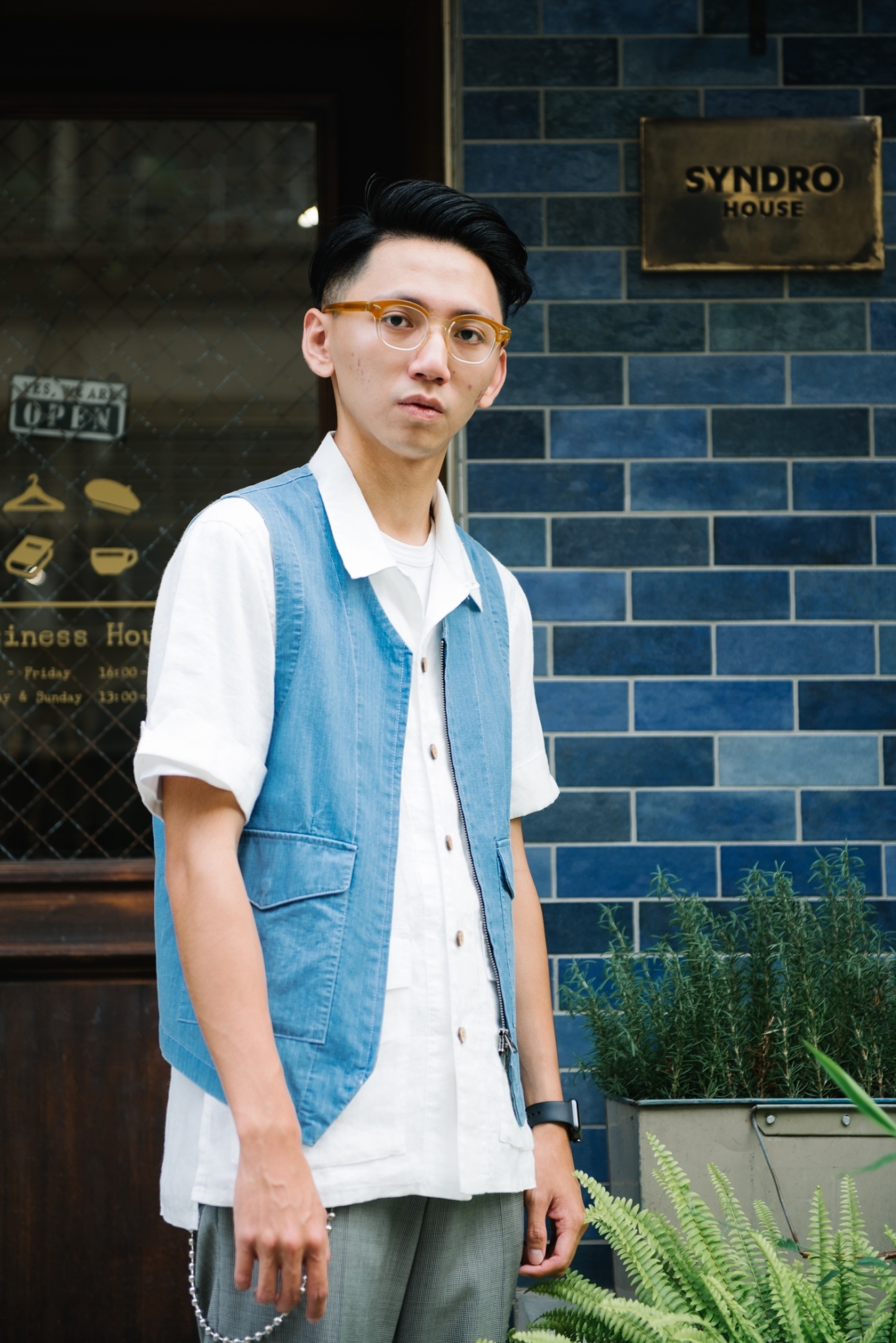 夏天除了單純使用基本的內搭之外,也很喜歡利用「背心」這項單品進行搭配,“BREATH HOLDER” 工作背心是我一直相當喜歡外搭的單品,面料選用透氣舒適的純棉重磅雙層網紗,穿上後也絲毫不感負擔,與下身 “THE WIDE ONES” 採同樣布料,與一樣的藍染色澤成套搭配更彰顯氣場。