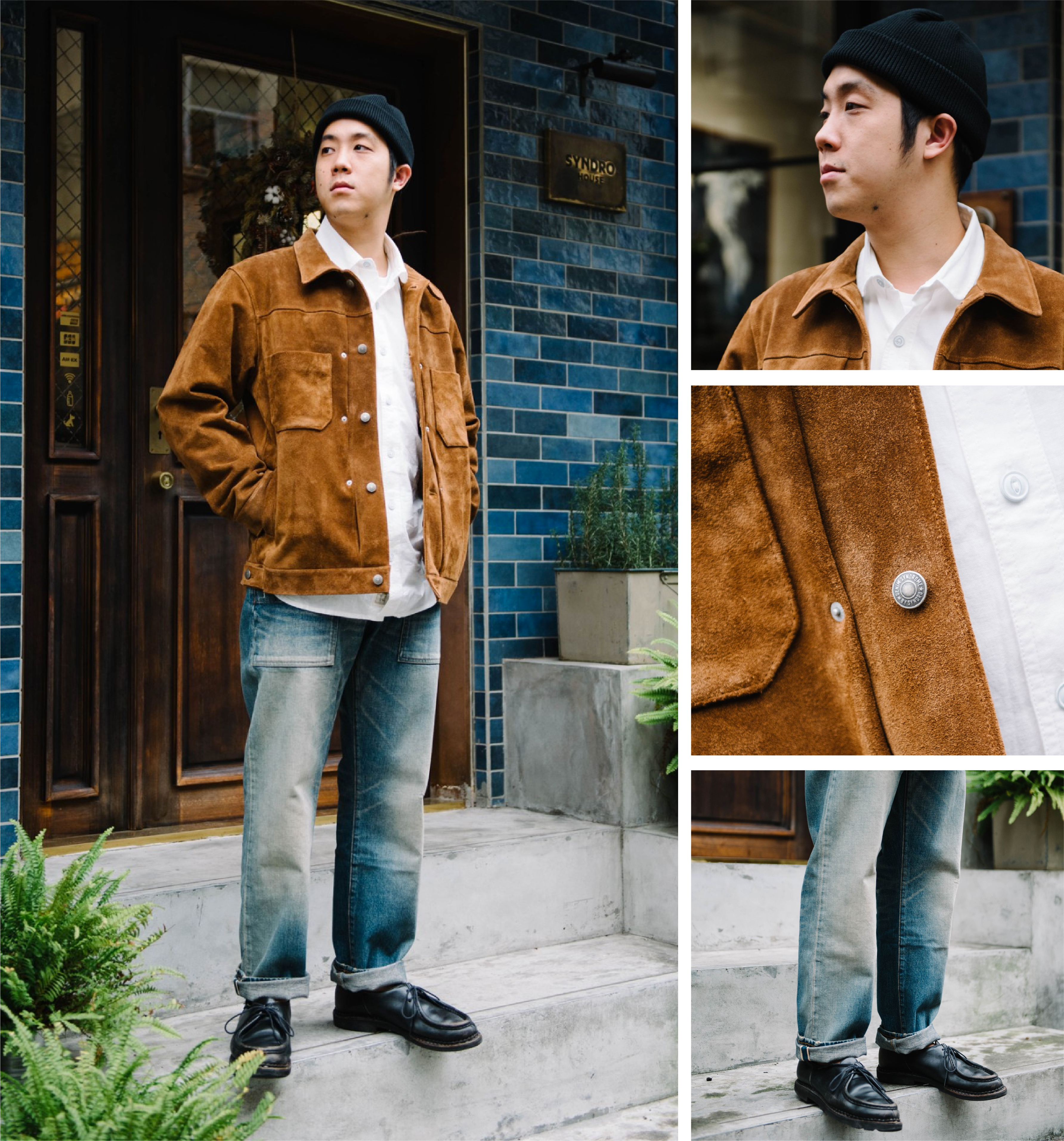 「麂皮夾克與刷色丹寧皆散發強而有力的粗獷味道。」