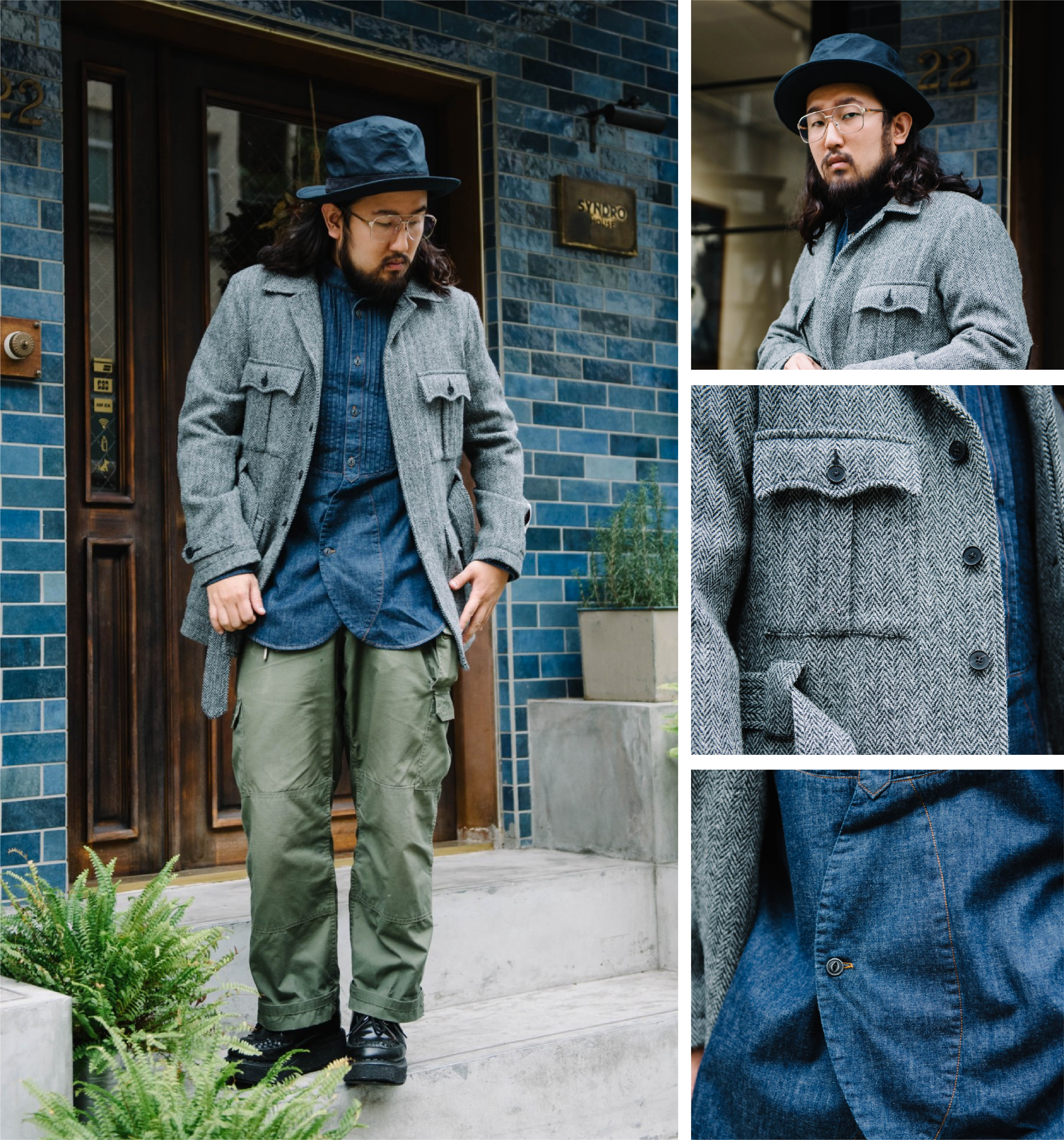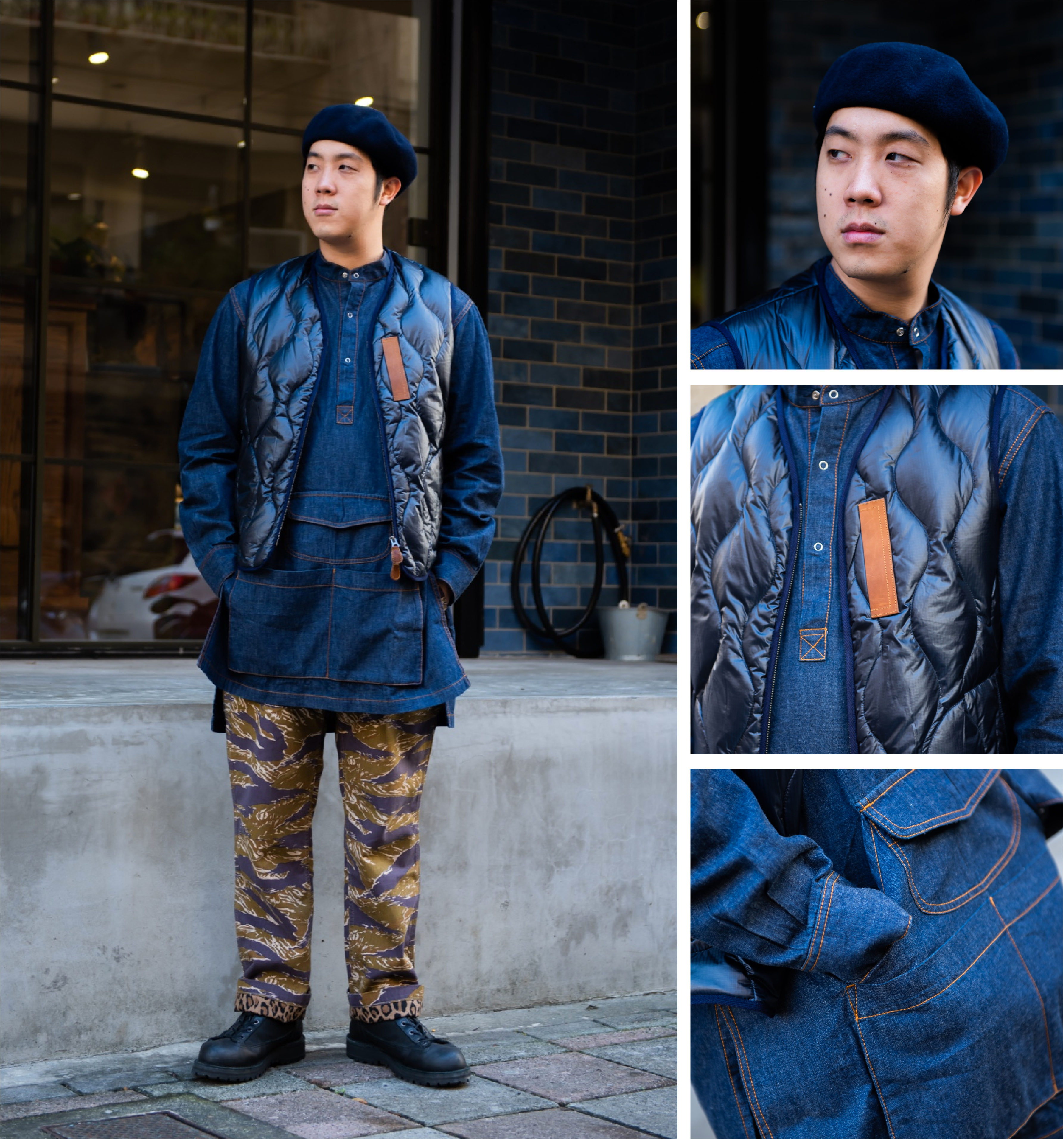 「較為紳士質感的上身搭配軍事氣息長褲,剛好的平衡中中帶點衝突感。」