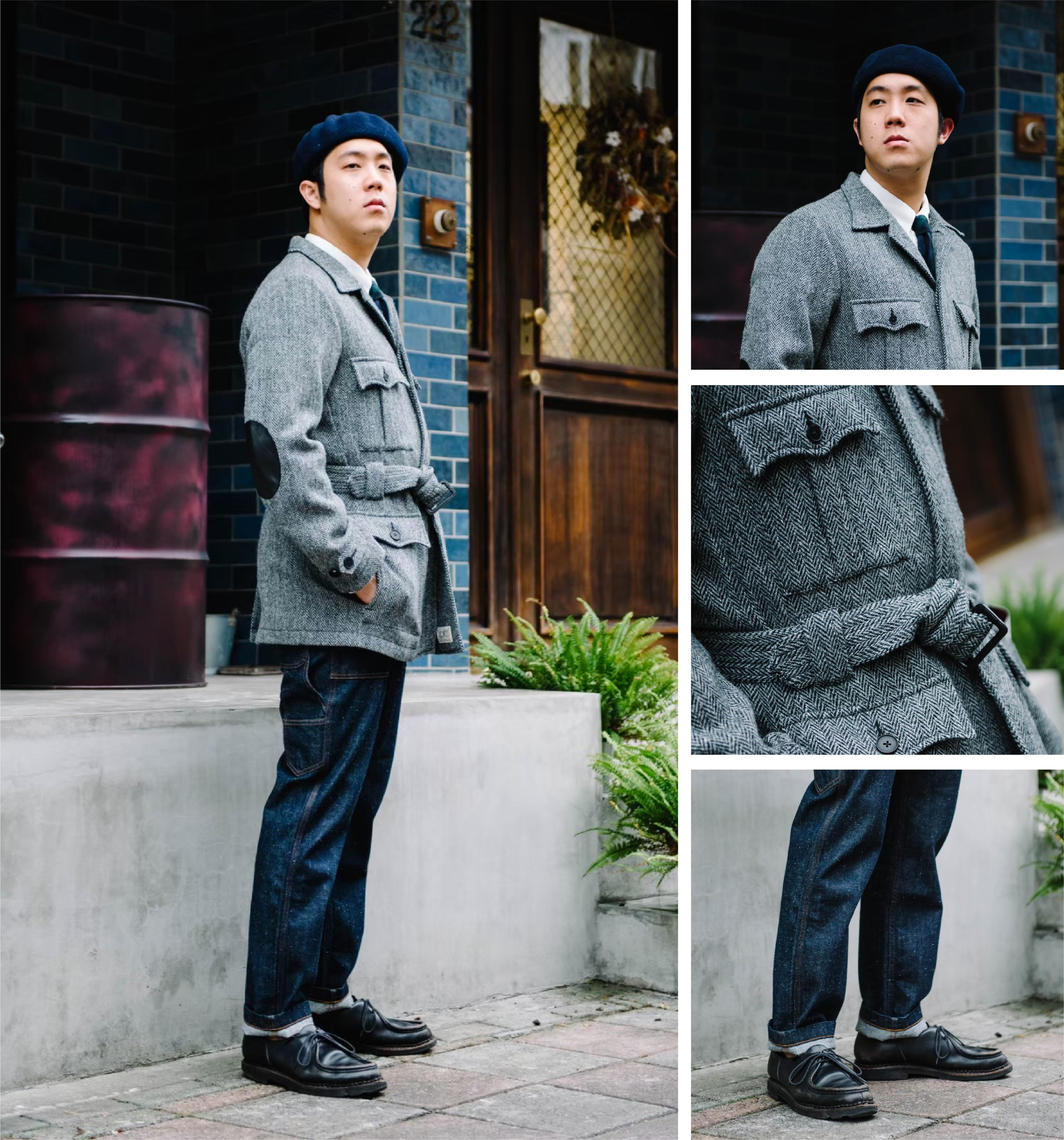 「優雅的獵裝外套與百搭的單寧下身營造斯文大器氛圍。」