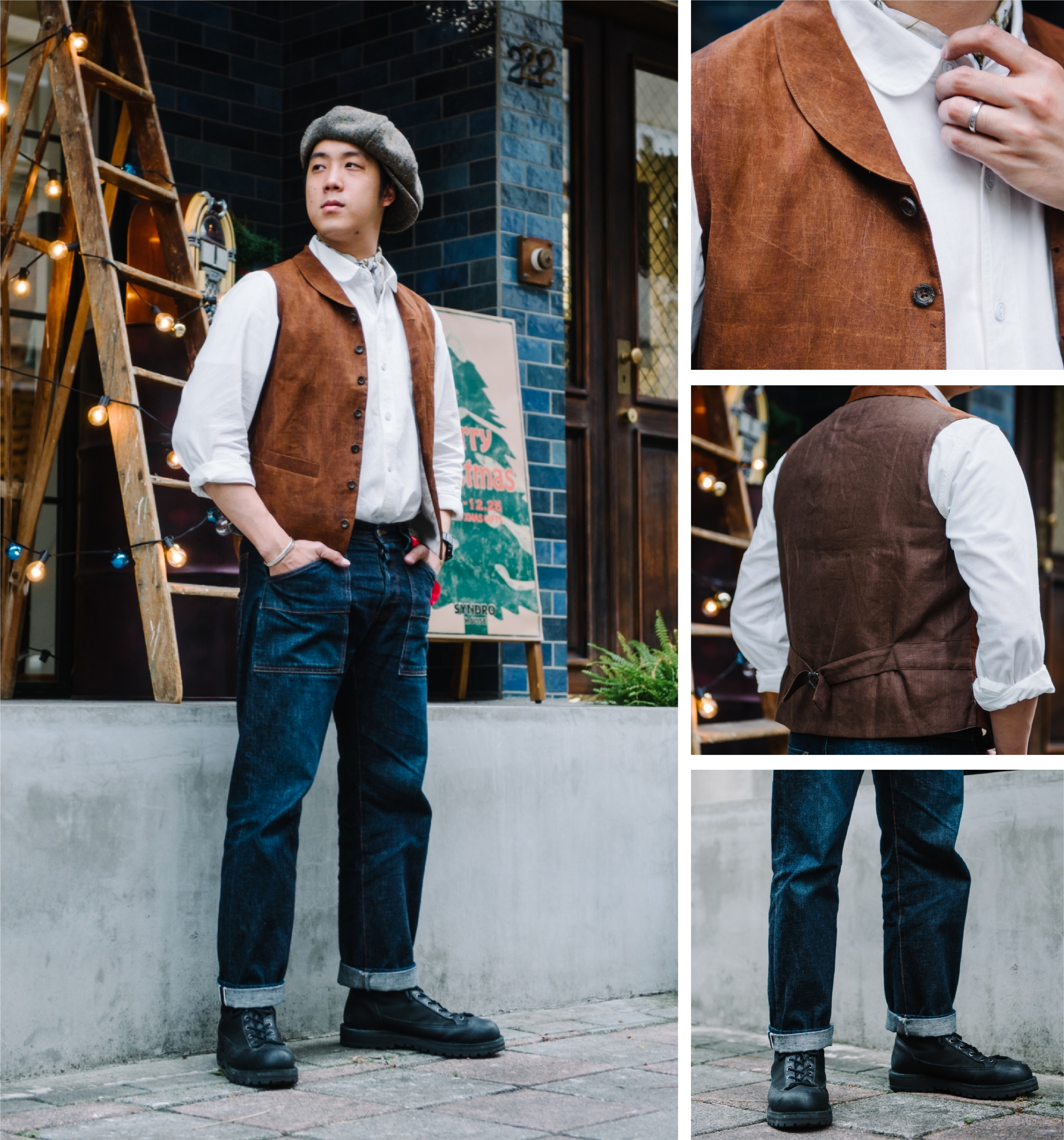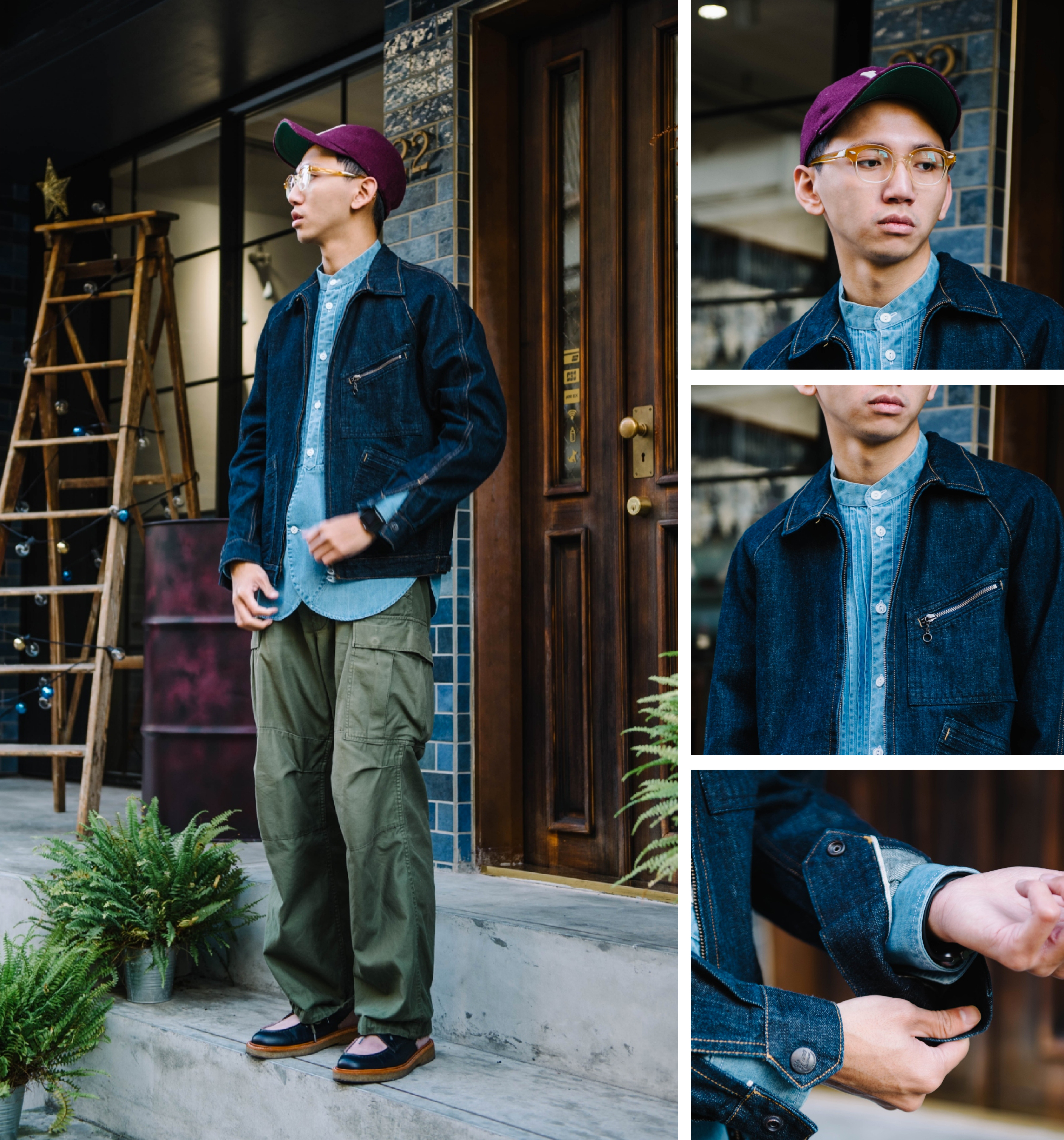 「利用帽款及紮進上身襯衫等等細節去讓全身氛圍更特別。」