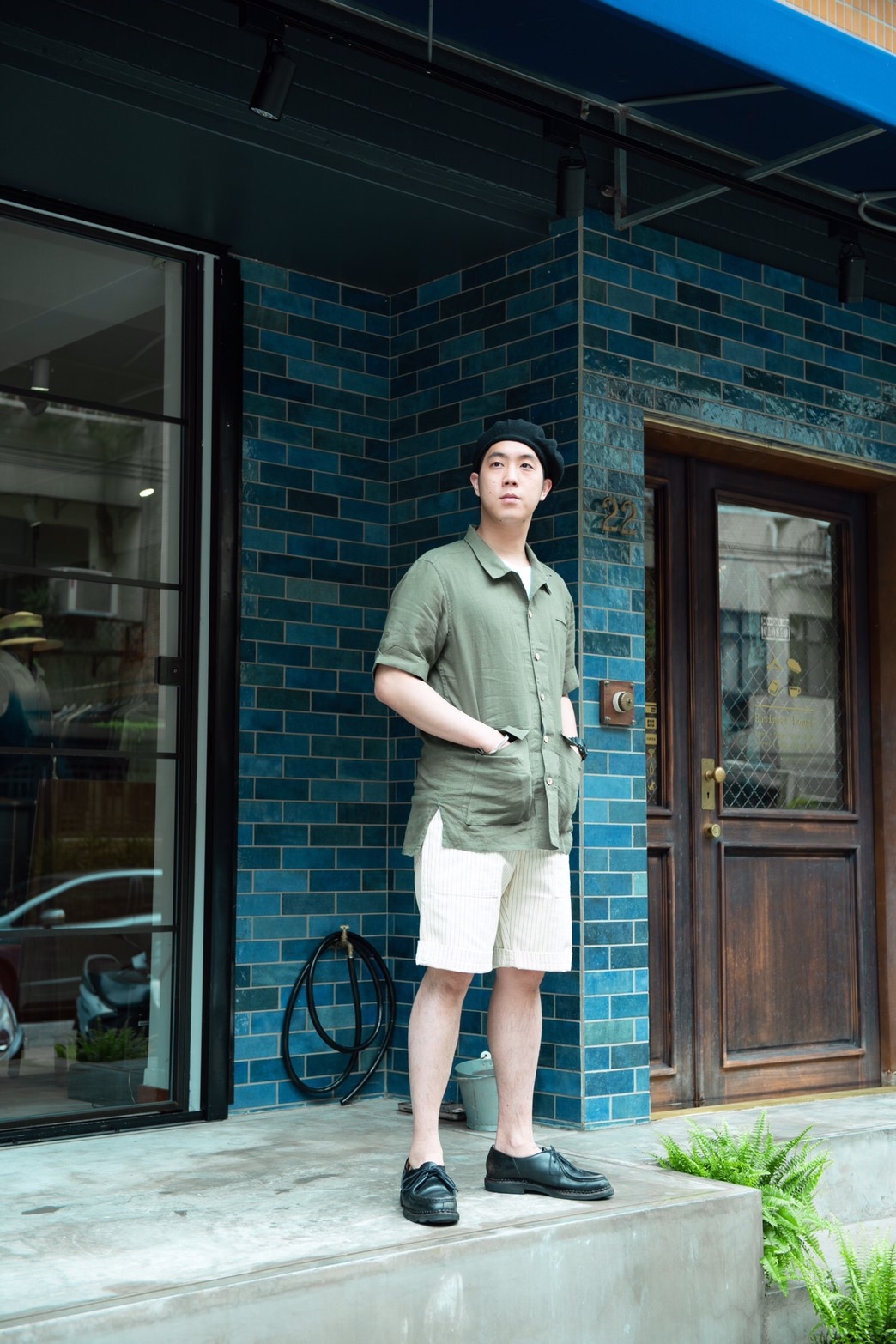 軍綠與白的搭配相當清爽,雖然此款 “SHAKA” 顏色上定調為「軍綠」,但在細節及單品設定上仍維持著夏威夷衫的休閒氛圍,像是亞麻布料及椰殼釦,穿上後能一次感受兩種不同風情的服裝元素同時並存。