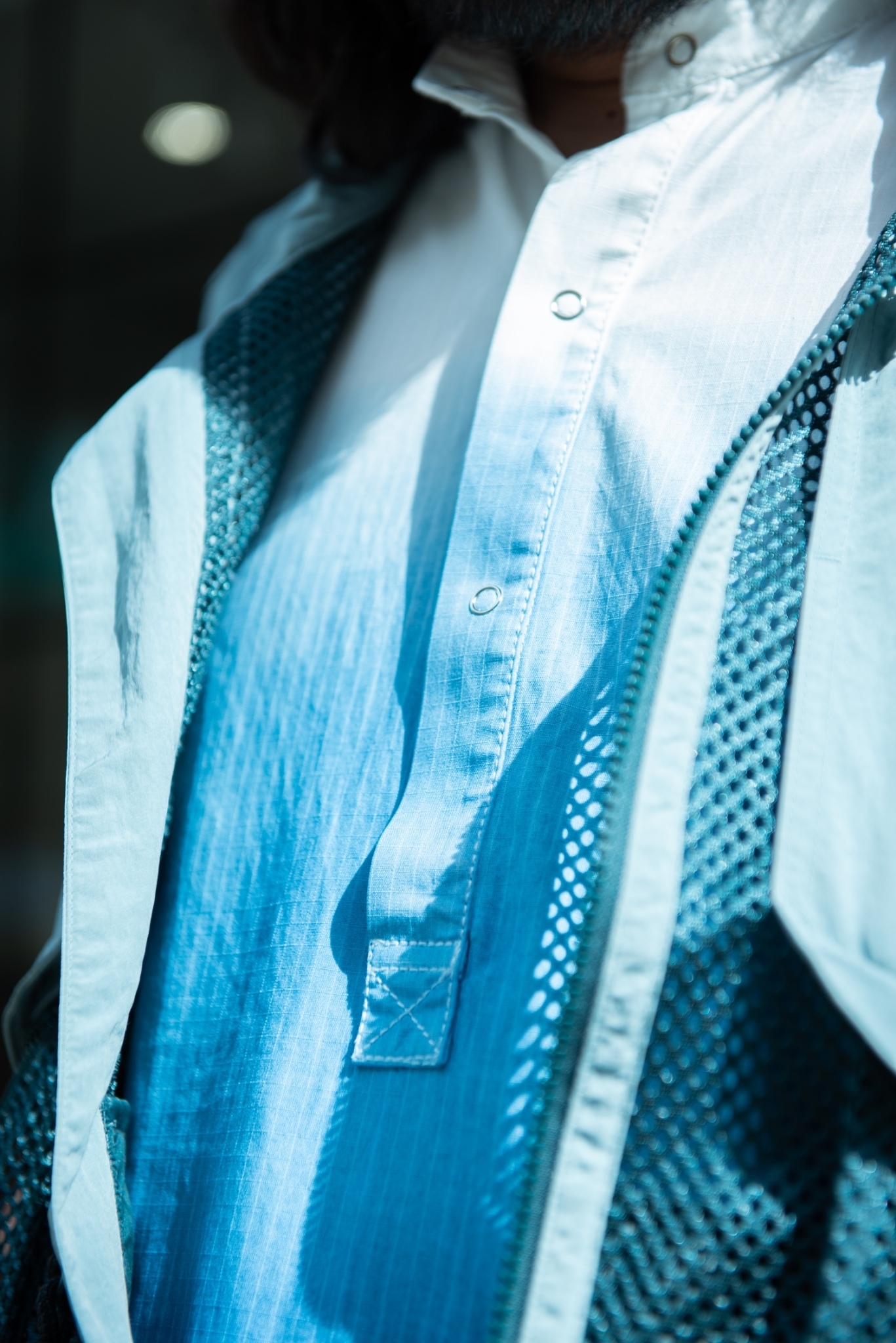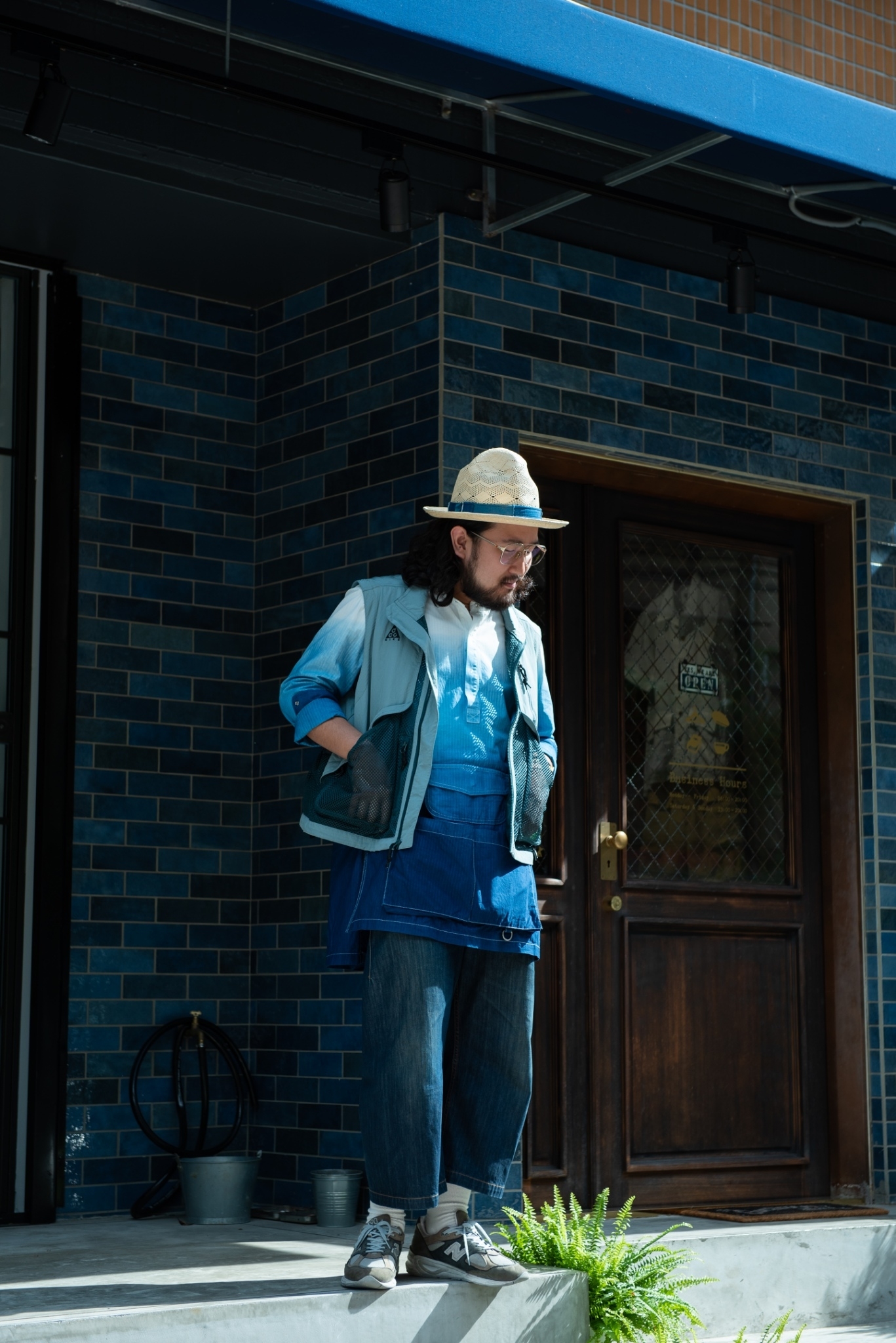 仍舊是最喜愛的一身藍搭配,光是 “WORKMAN” 的漸層藍就十分引人注目,單單一件份量感就挺足夠。而布料也選用了 ripstop 抗撕裂布料,經過藍染後所呈現的色澤、線條更加明顯的每塊方格,都十分誘人。