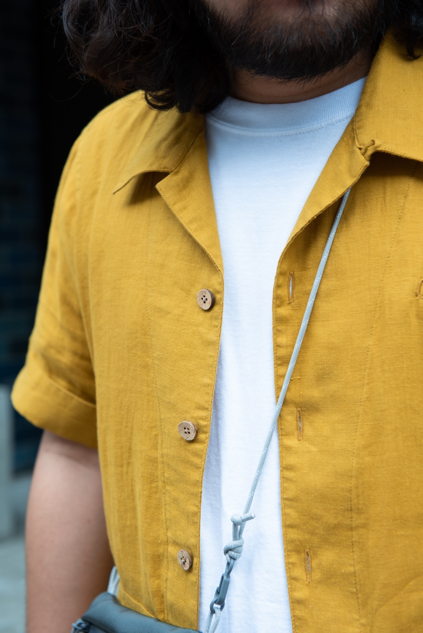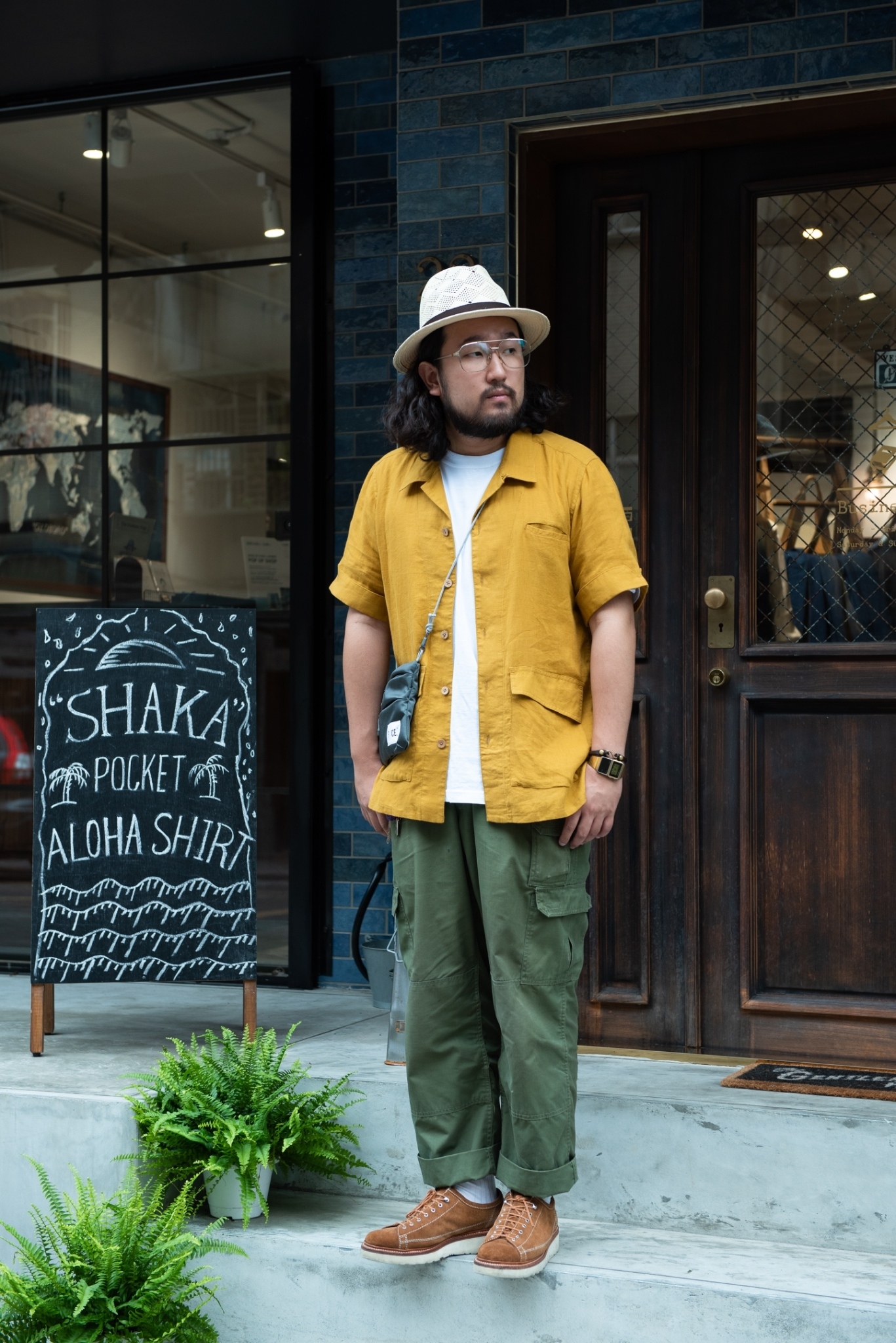 “SHAKA” 夏威夷衫的新色彷彿在熾熱的天畫上一抹醒腦的芥末黃,飽滿的色澤不論是深、淺色褲款都簡單易搭,就連軍褲也能輕易組合,襯衫兩側的大口袋與軍褲本身具備的機能元素十分合拍。