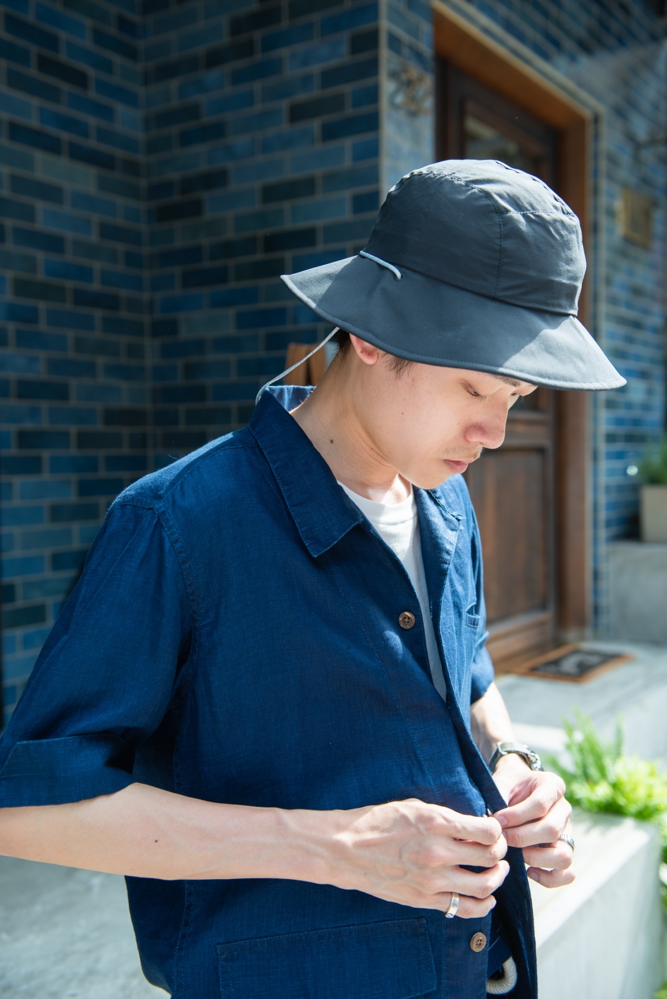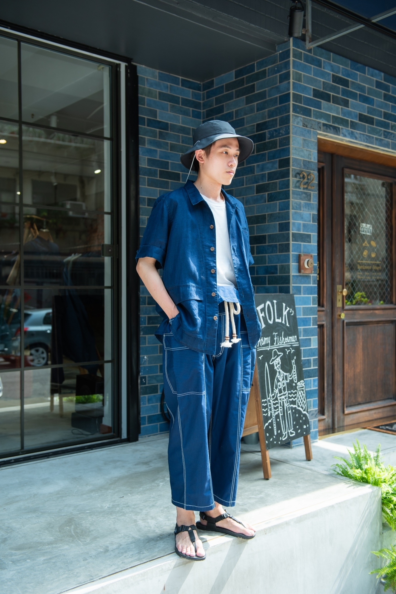 因為戴了漁夫帽便想要配合打扮成很灑脫的樣子,”FOLK” 漁夫軍褲的藍染配色使用 ripstop 面料,整體手感更加堅韌,白色車縫線在飽滿的藍色布料上也相當好看。