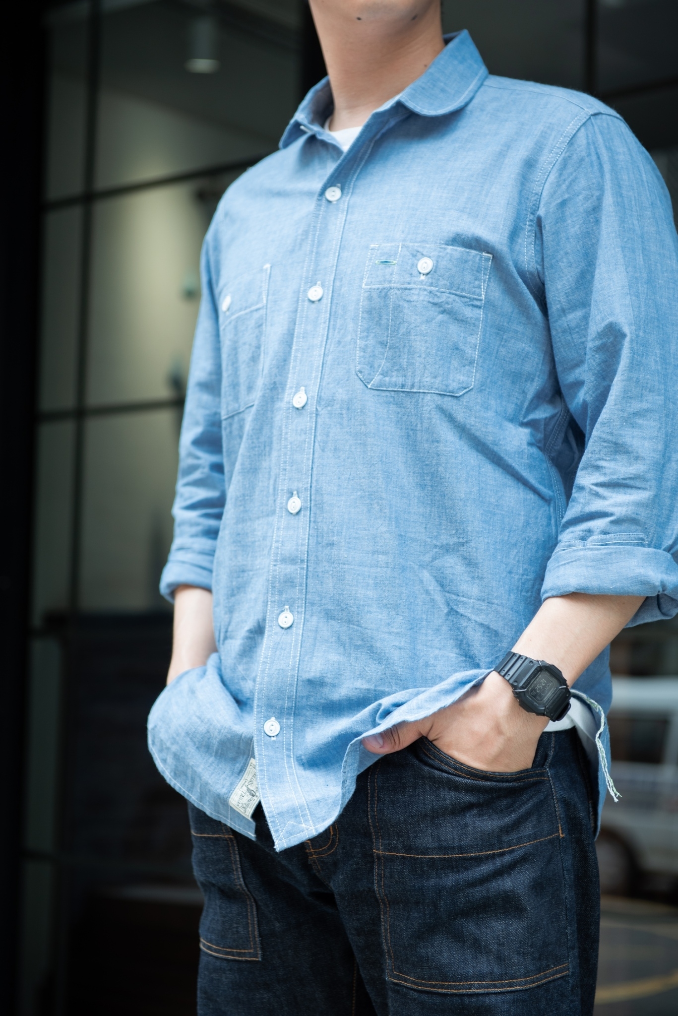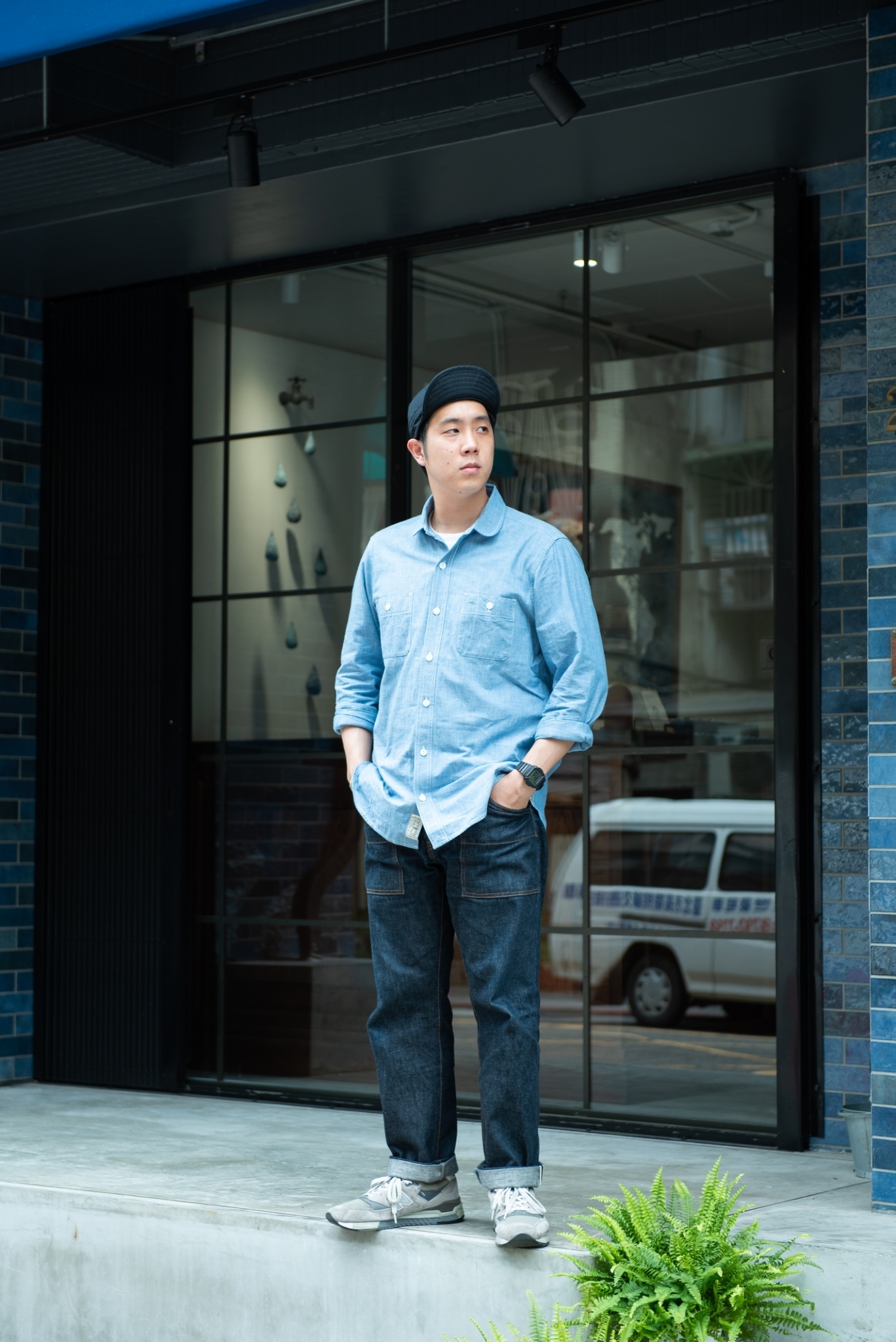 這是我心中十分經典的工裝組合,國外許多知名古著店,現在仍會高價販售狀況好的老 Chambray 襯衫,代表了這項單品的經典及在喜愛工裝人們心中的地位。