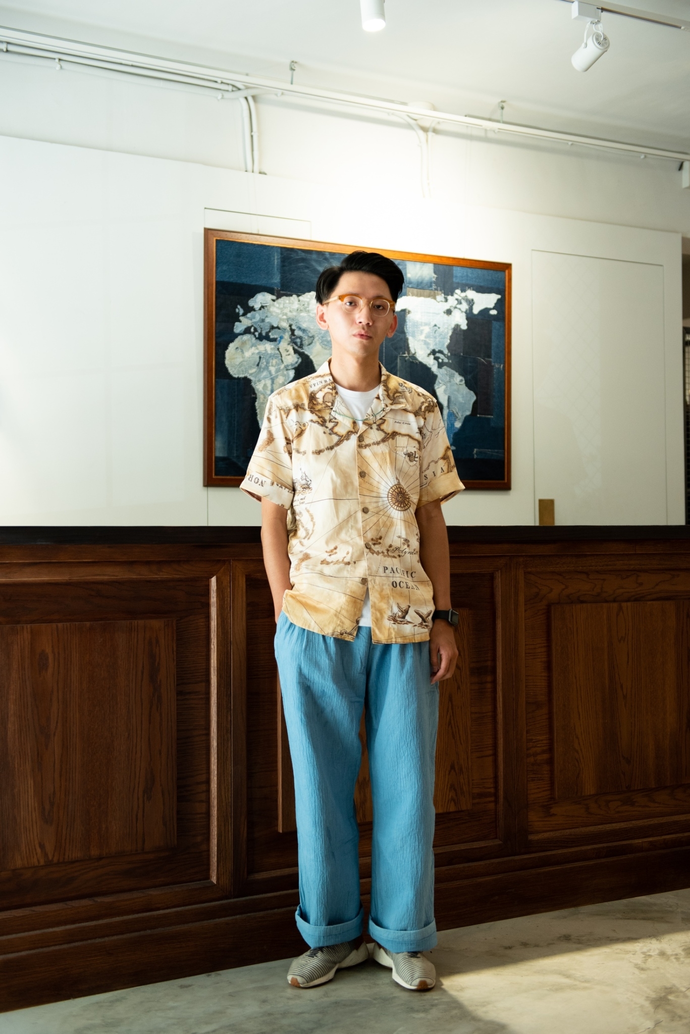 此款 “SHAKA” 夏威夷衫印製了世界地圖於上頭,一件就能帶有相當重的份量感;而下身的 “THE WIDE ONES” 工作西褲以雙層紗製作之外,較為寬鬆的版型也讓穿著上與視覺上都舒適自在。
