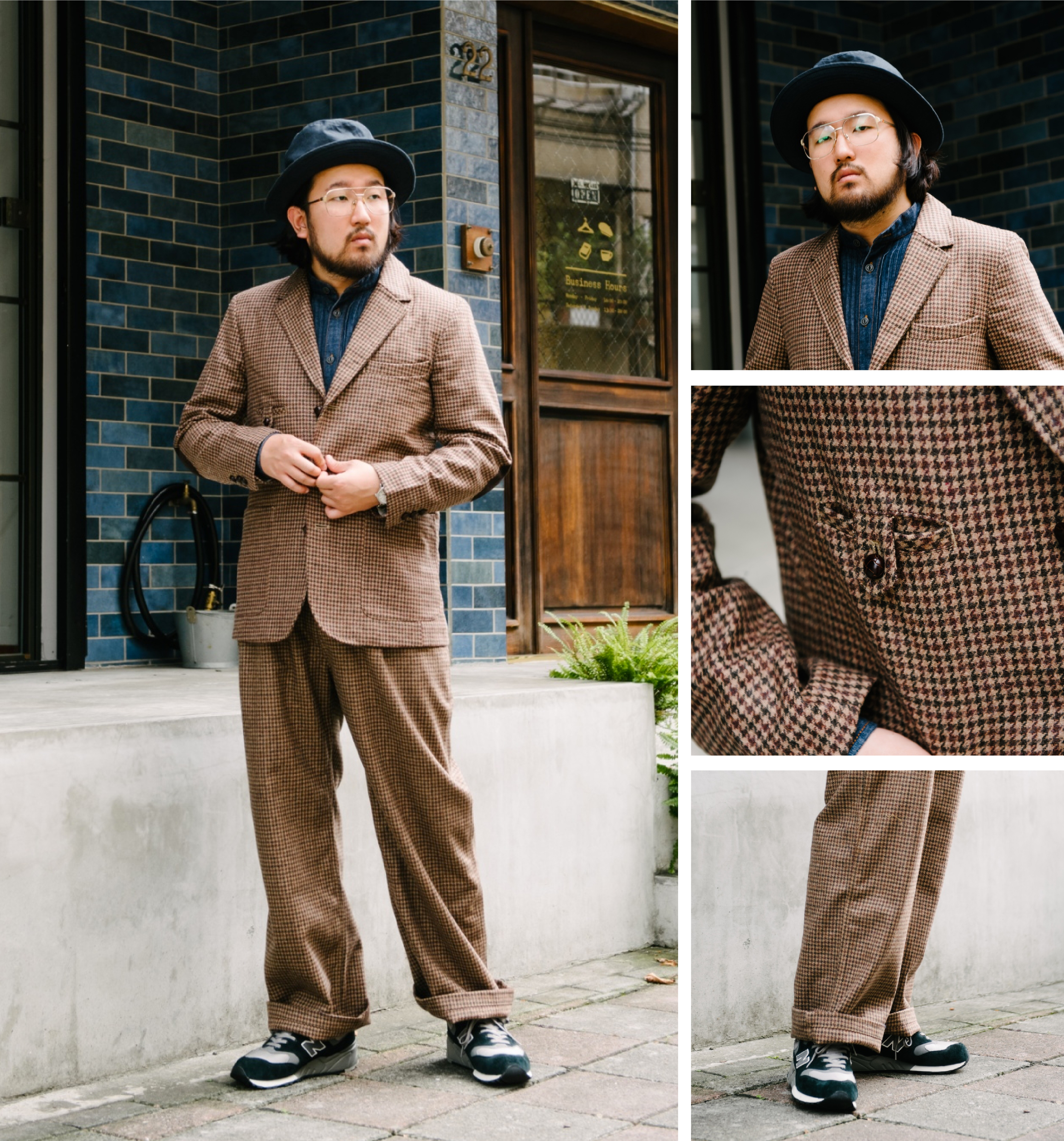 「“GAIA”與“THE WIDE ONES”的成套搭配,硬挺的可水洗羊毛面料有著濃厚的復古風味。」