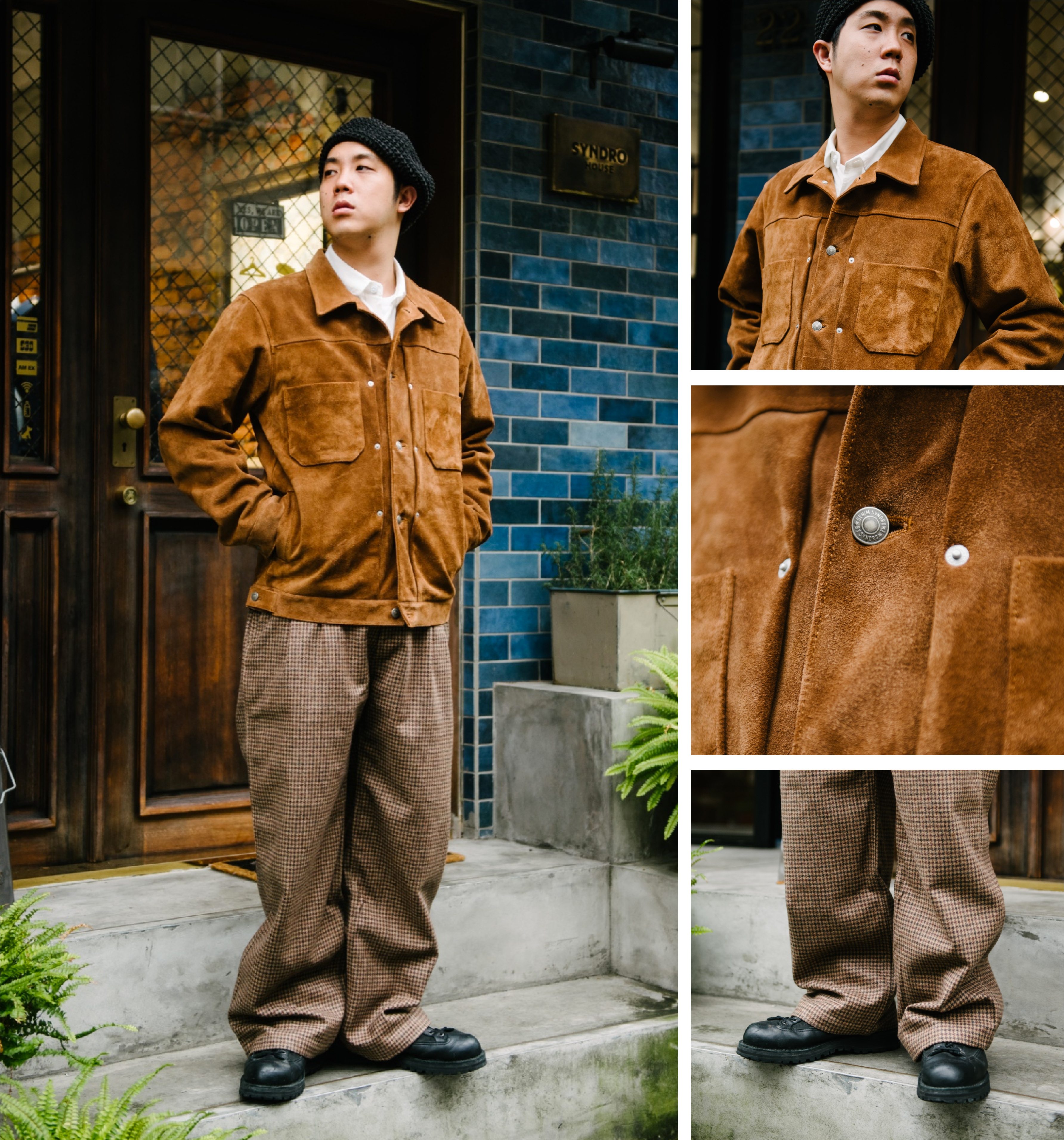 「使用毛呢寬褲與西部皮夾克來呈現溫暖的美式鄉村風情。」