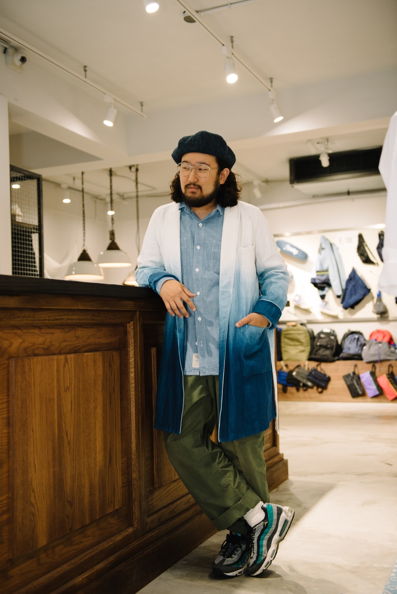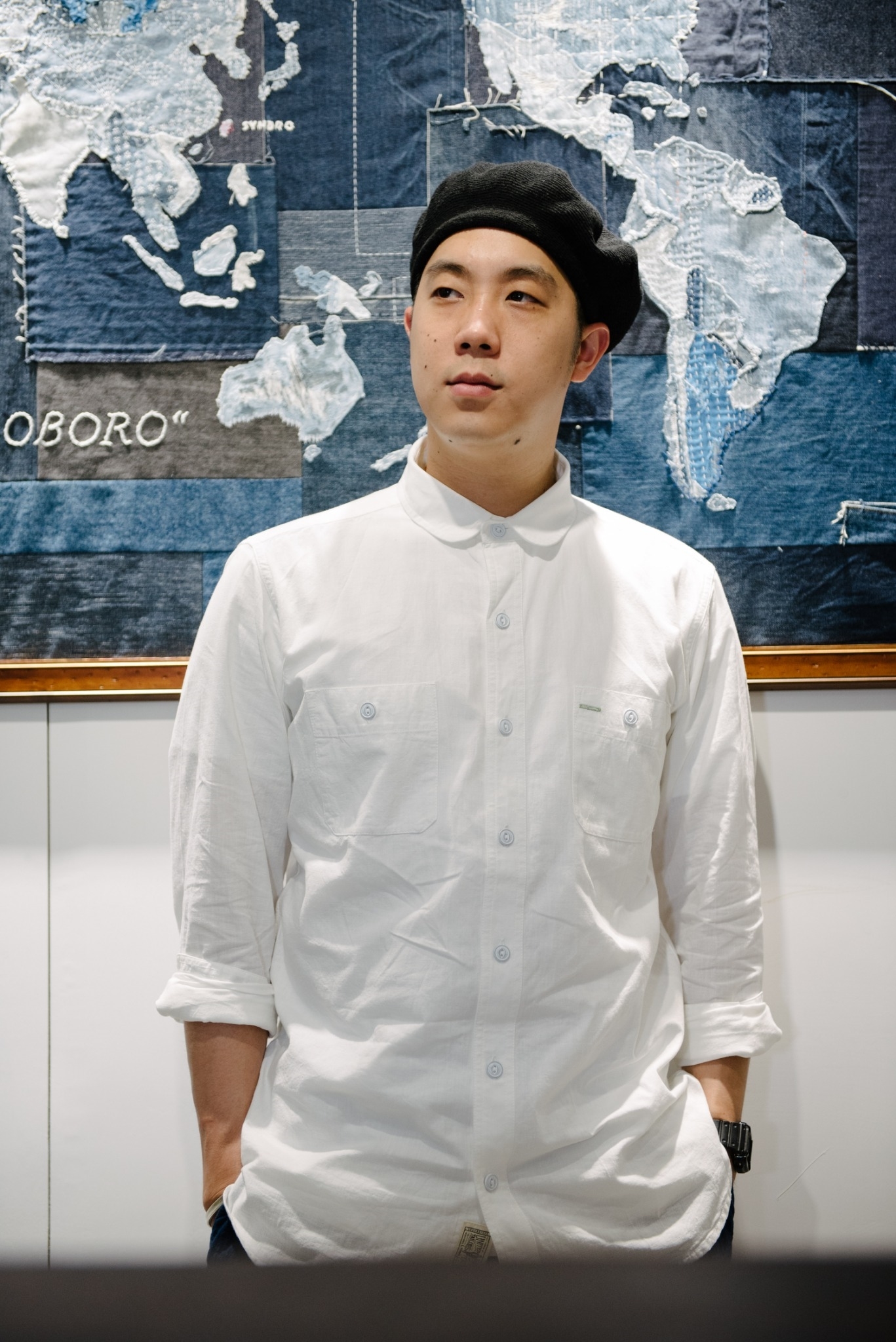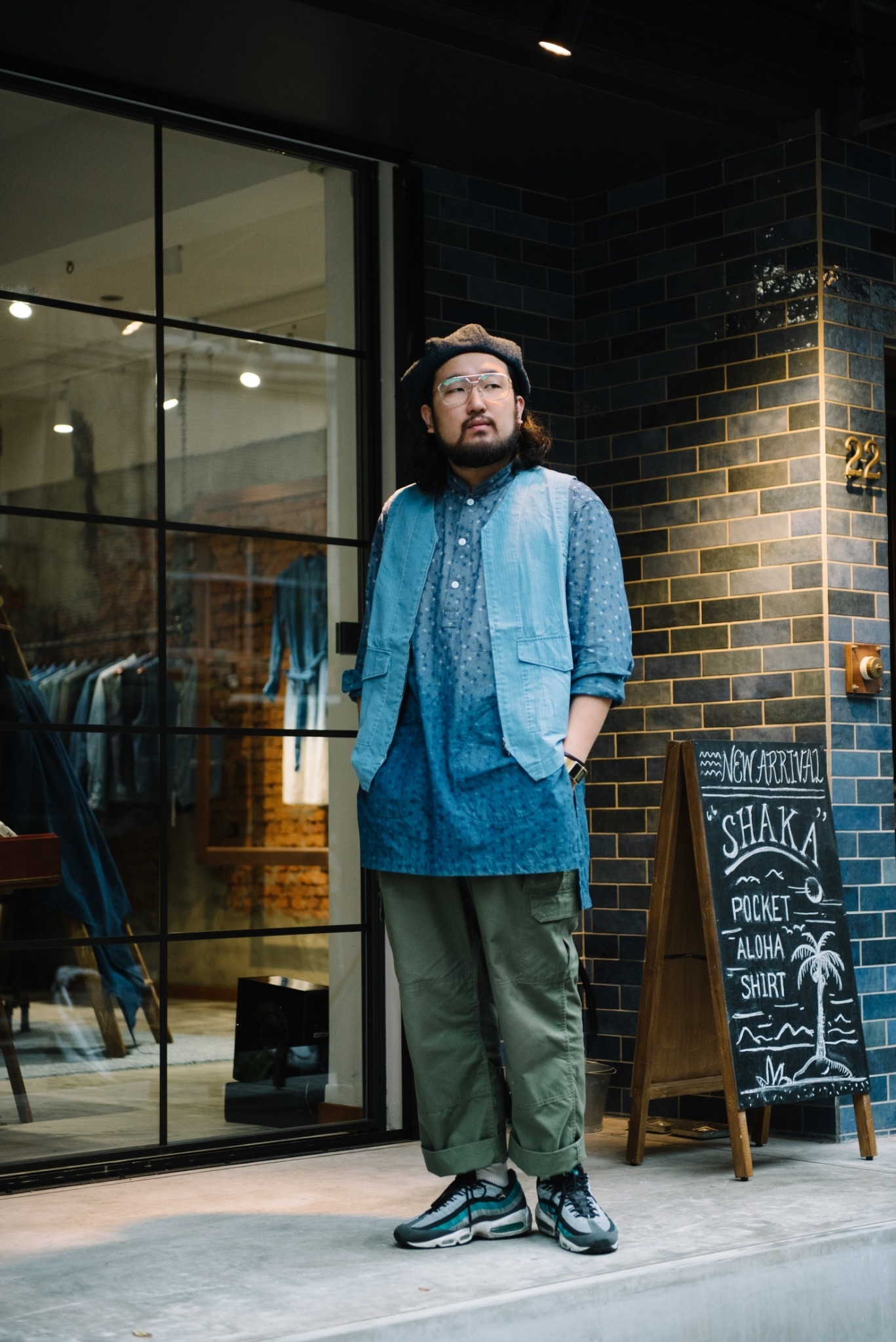 上身是十分飽滿的藍,下身搭上極具 vintage 感的 “CHIC LABOUR” 洗舊丹寧褲,在單品之間的層次感拉提不少,這樣老舊、樸實隨性的氛圍也是自身十分熱愛的。