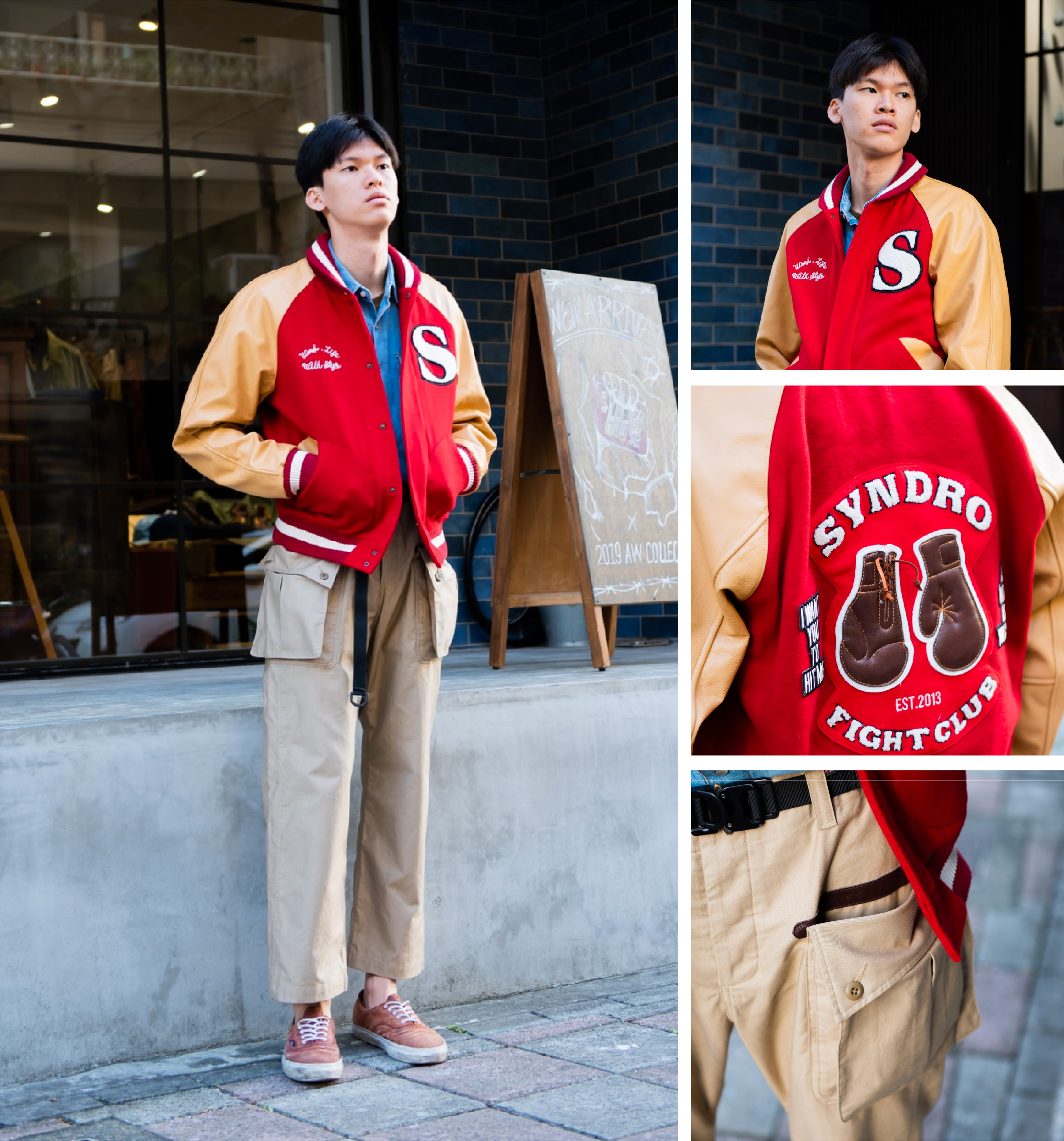 「飽滿的紅、刷色單寧與清爽的卡其組合成極富朝氣的裝扮。」