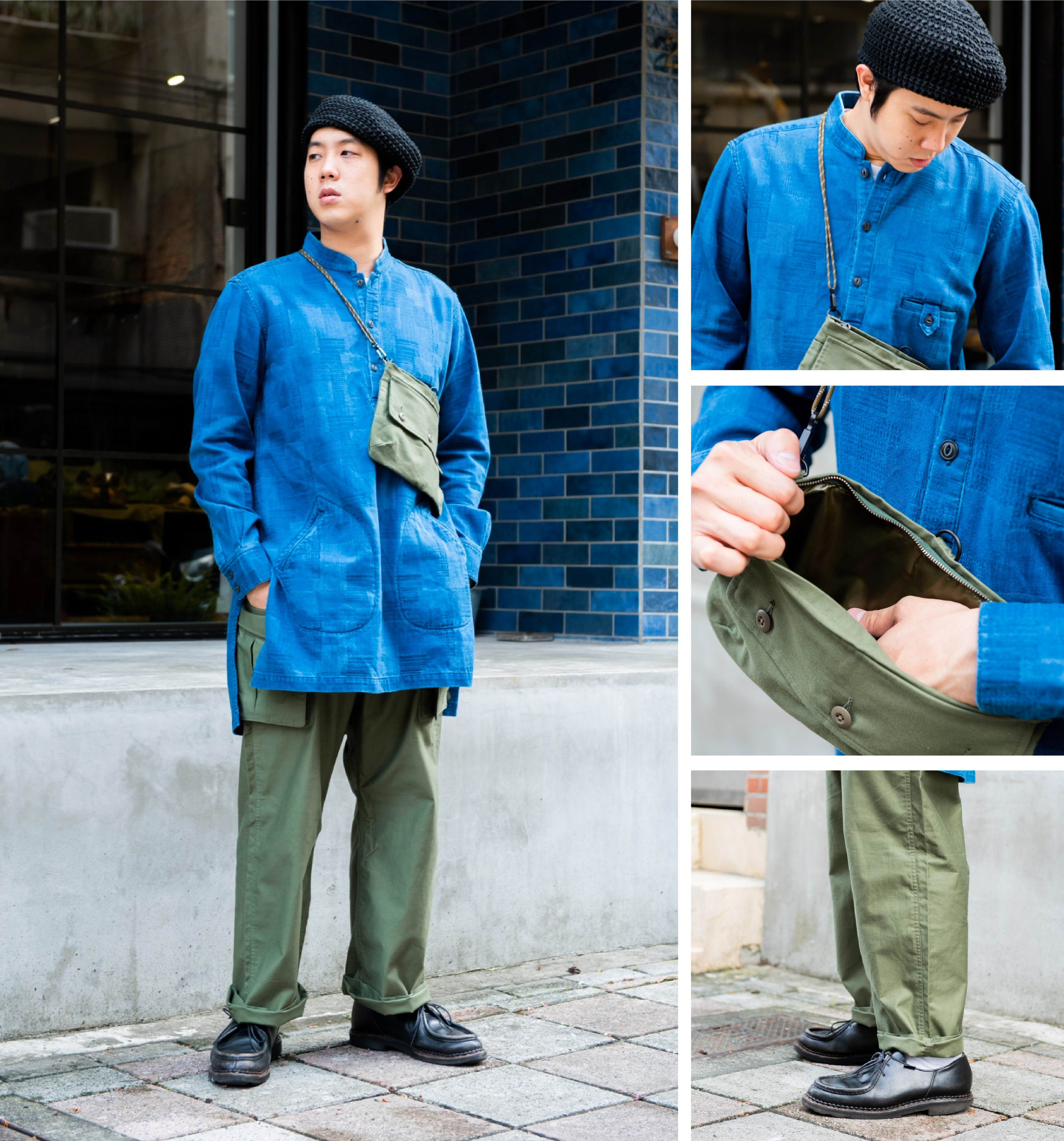 「相同面料的包款與軍褲,讓上下身顏色上達到平衡。」