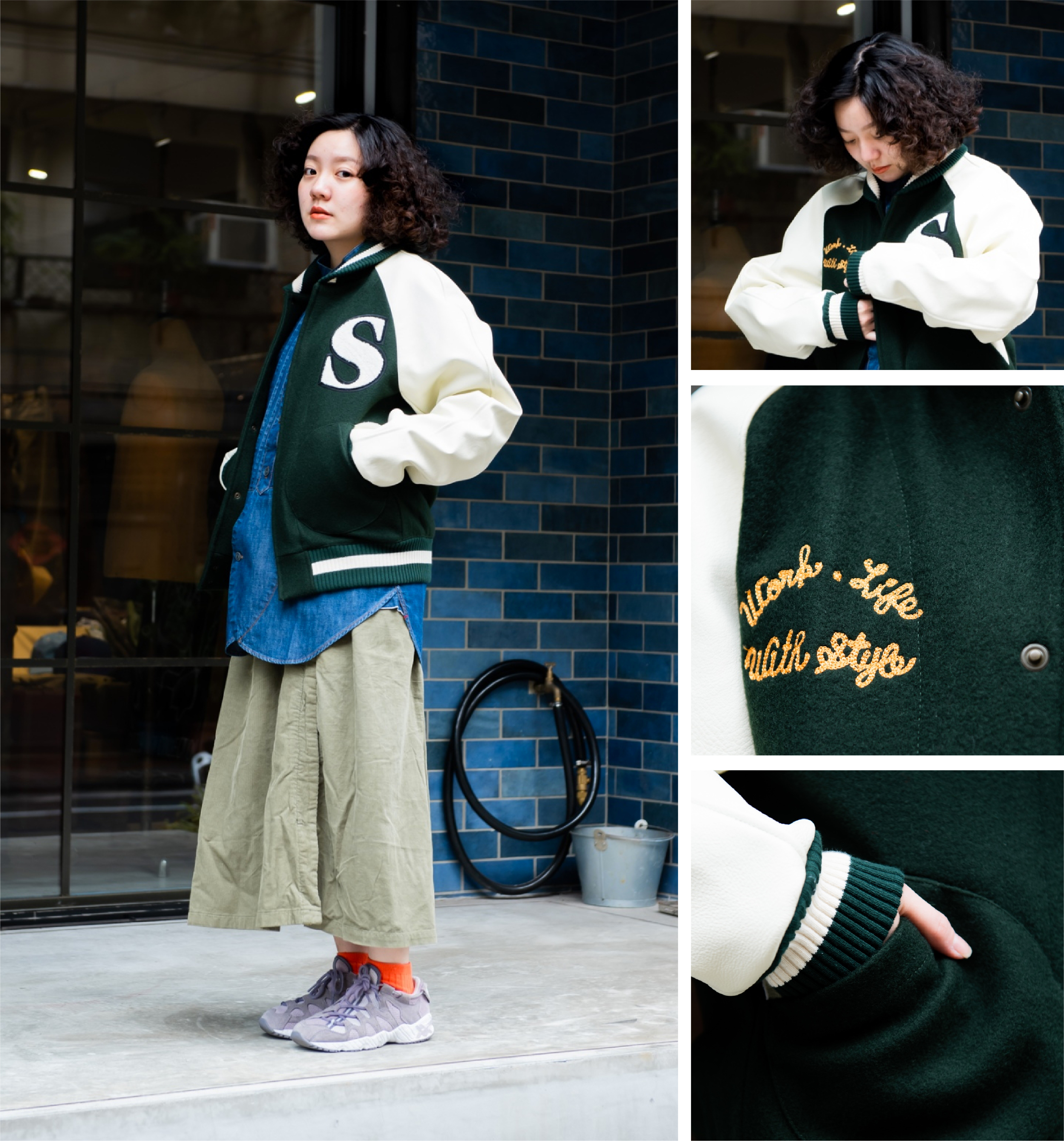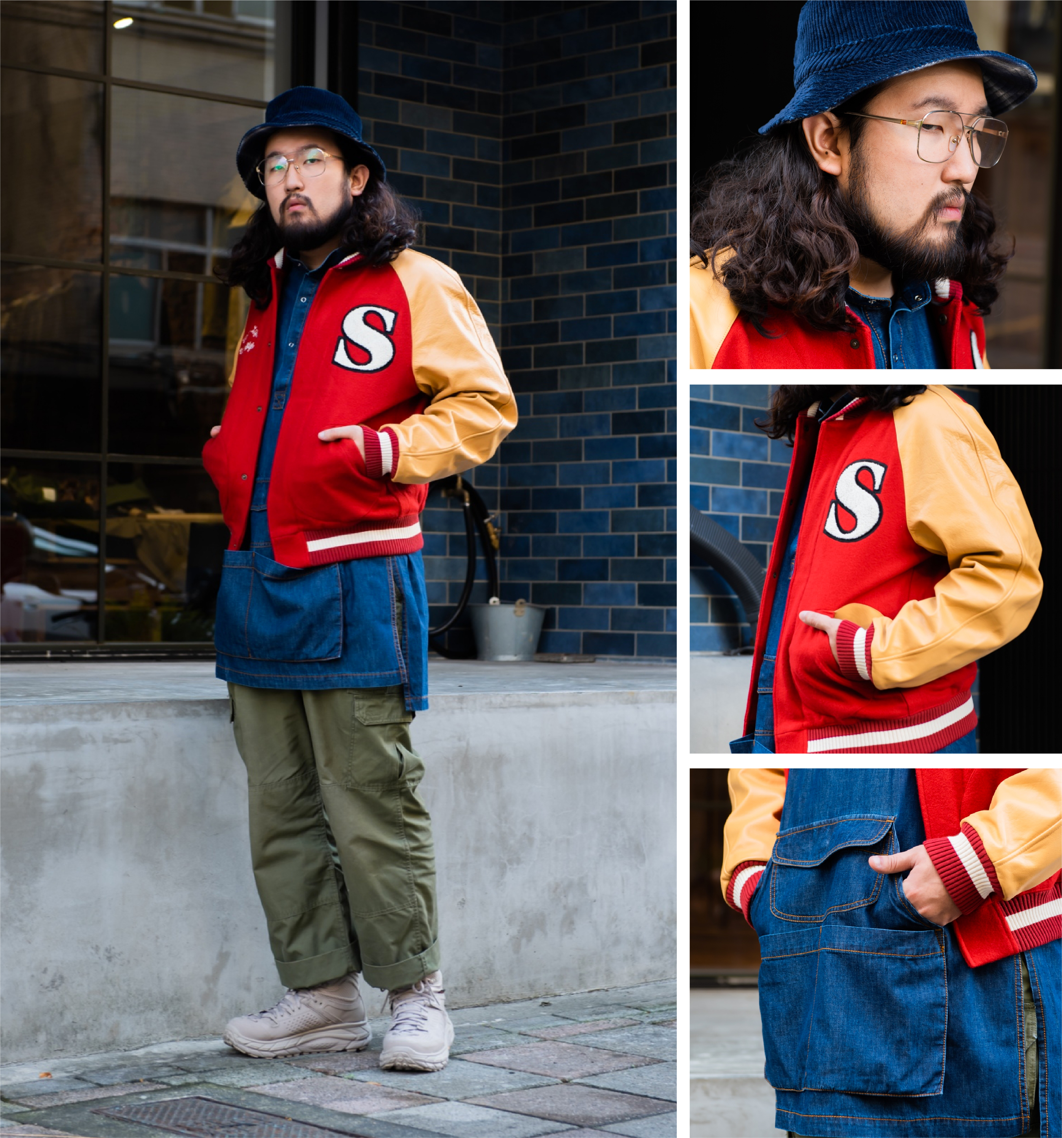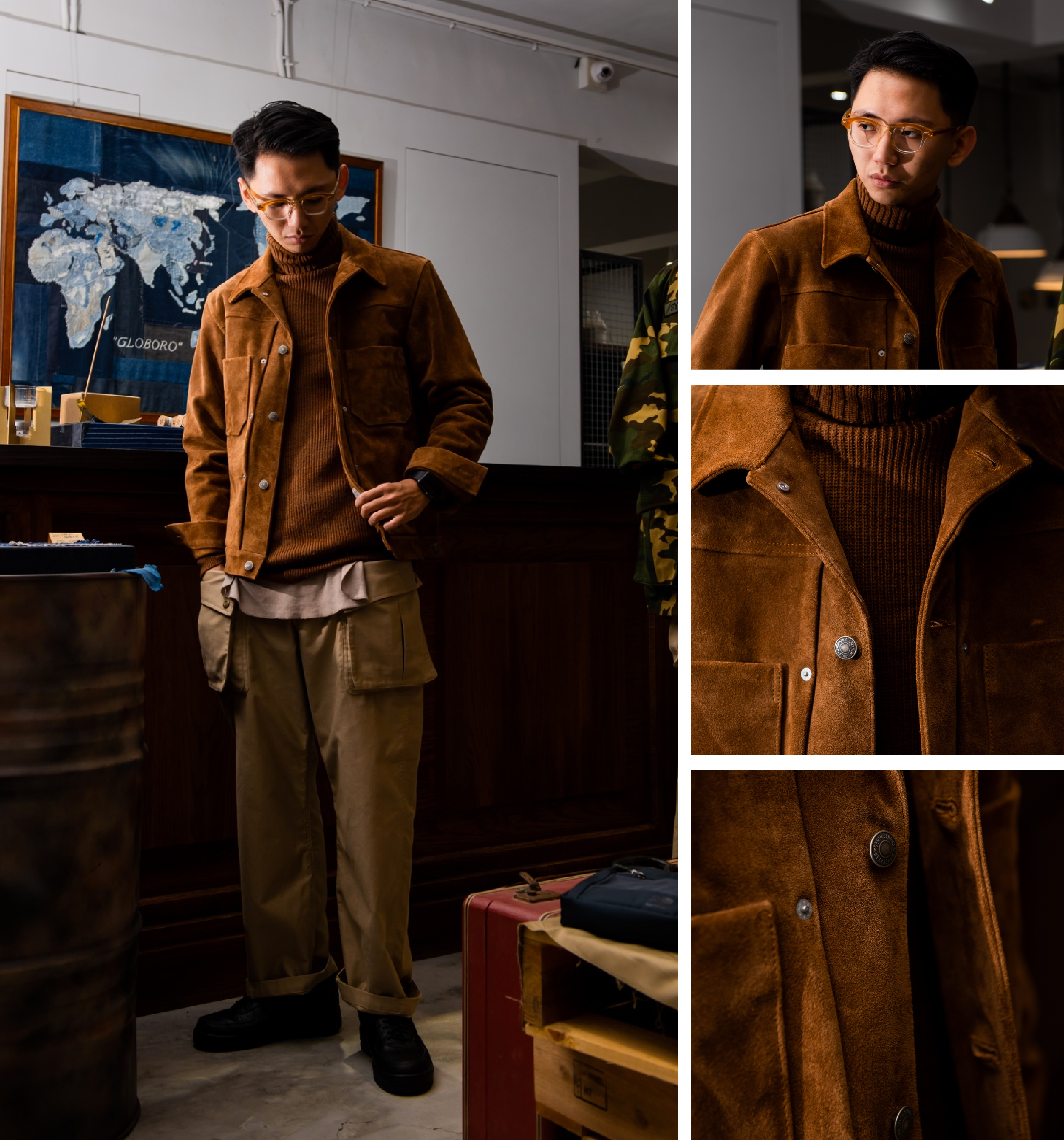 「輕微酵洗後的單寧布料散發美麗的藍色色澤,配上百搭的卡其軍褲十分耐看。」