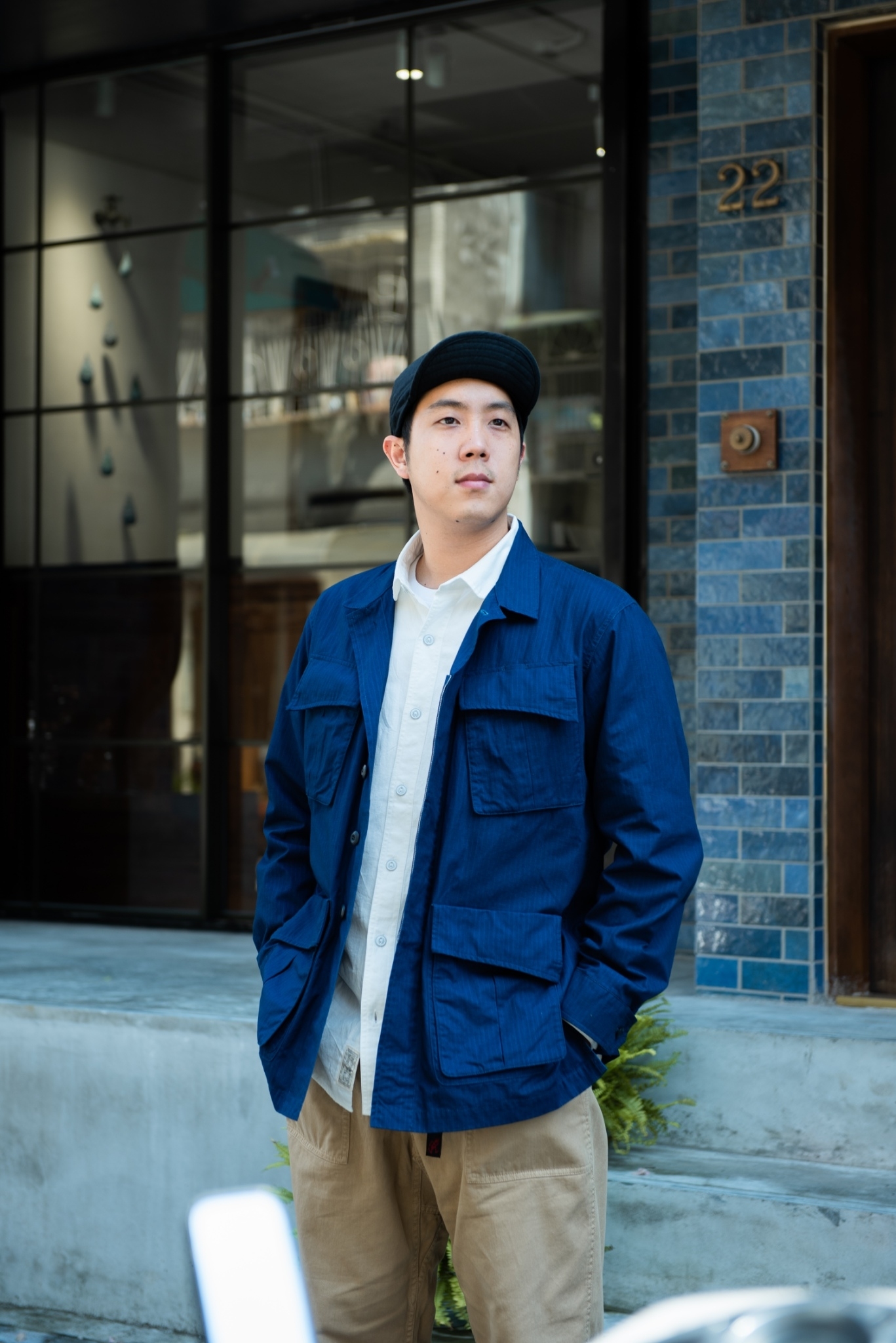接近傍晚後天氣便逐漸轉涼,套上 “JUNGLE” 六口袋夾克抵擋些許的涼意十分合適,輕薄的抗撕裂布料不過份厚重,但本身的挺度又十分足夠,穿上後更顯精神。