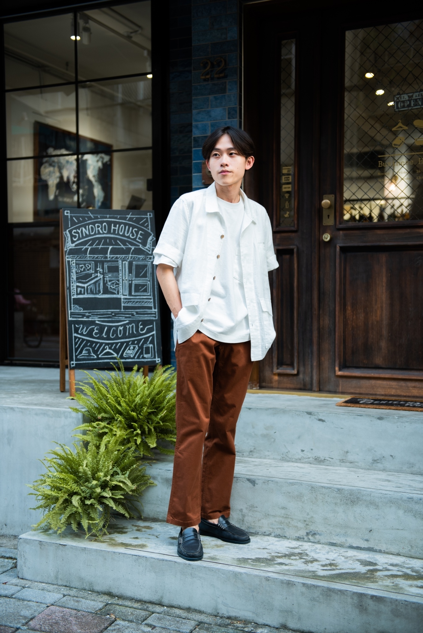 今天特別想以「輕鬆自在」的心情去穿衣服,上身選擇 “SHAKA” 夏威夷衫自然是因為單品本身所流露的大方氣息,開領設計、門襟的椰殼釦、反摺的袖口及衣襬下方的兩處大口袋,每個細節都是堆疊成單品不造作氣質所不可或缺的拼圖之一。