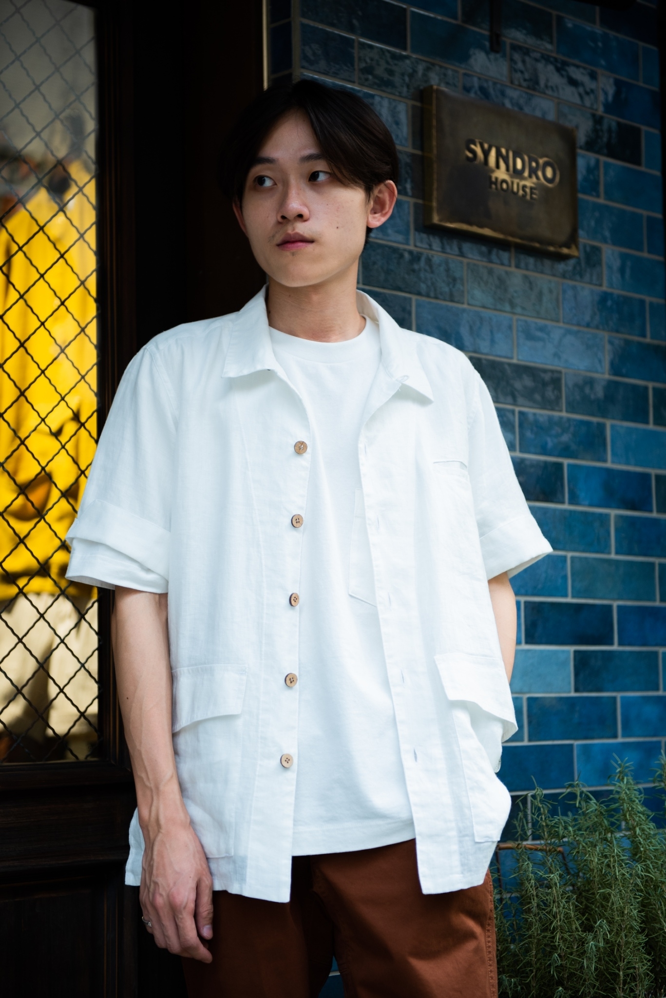 “SHAKA” 夏威夷衫版型大器,但就算是女生著用也不會過於陽剛,布料方面則是選用亞麻面料,鋪上一層飽滿的芥末黃後帶著些許高級的質感,適合在夏季著用之外,配合軍綠色下身也相當合拍。