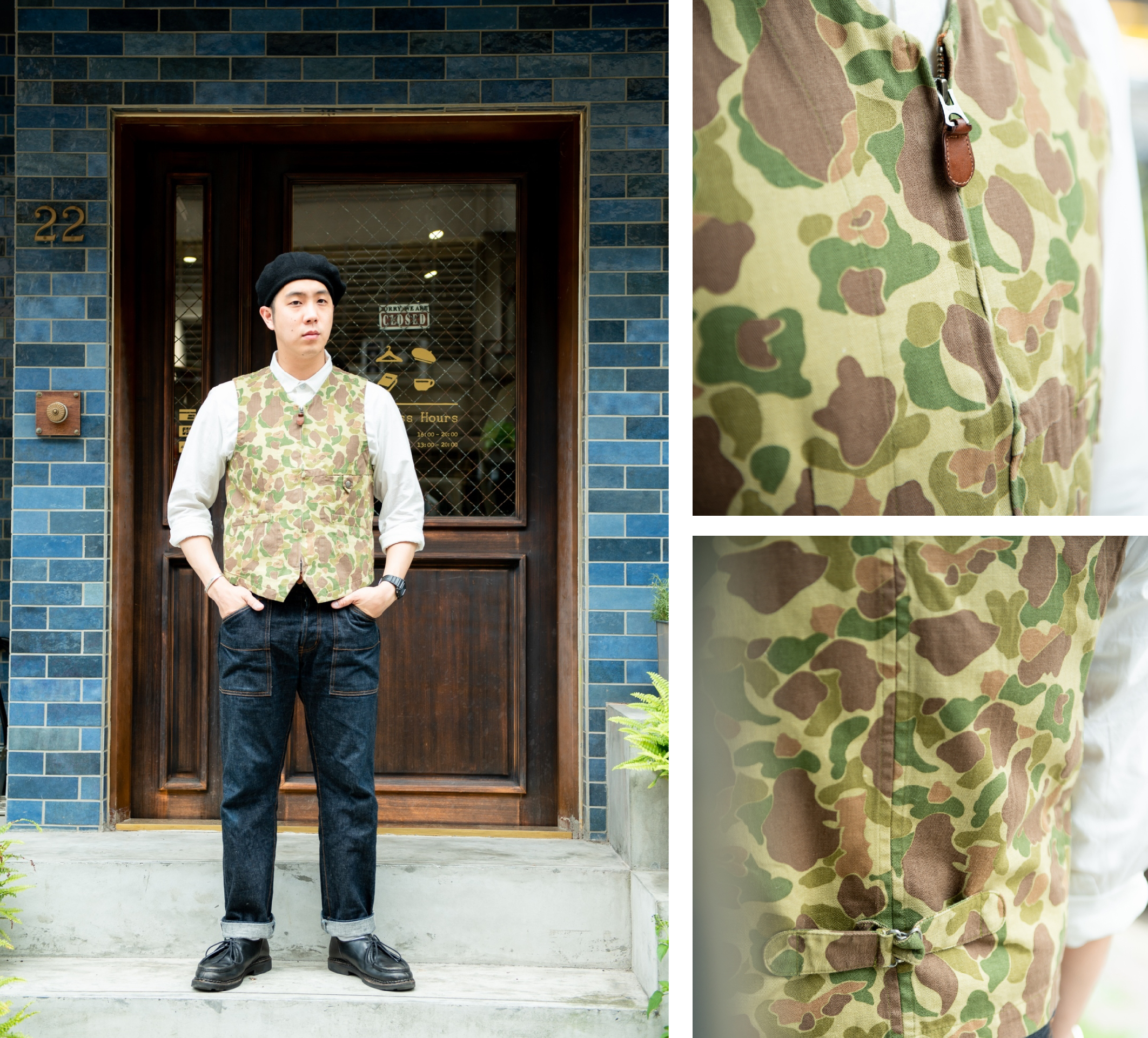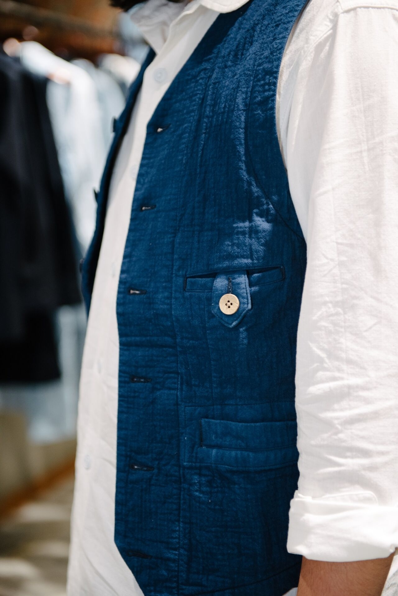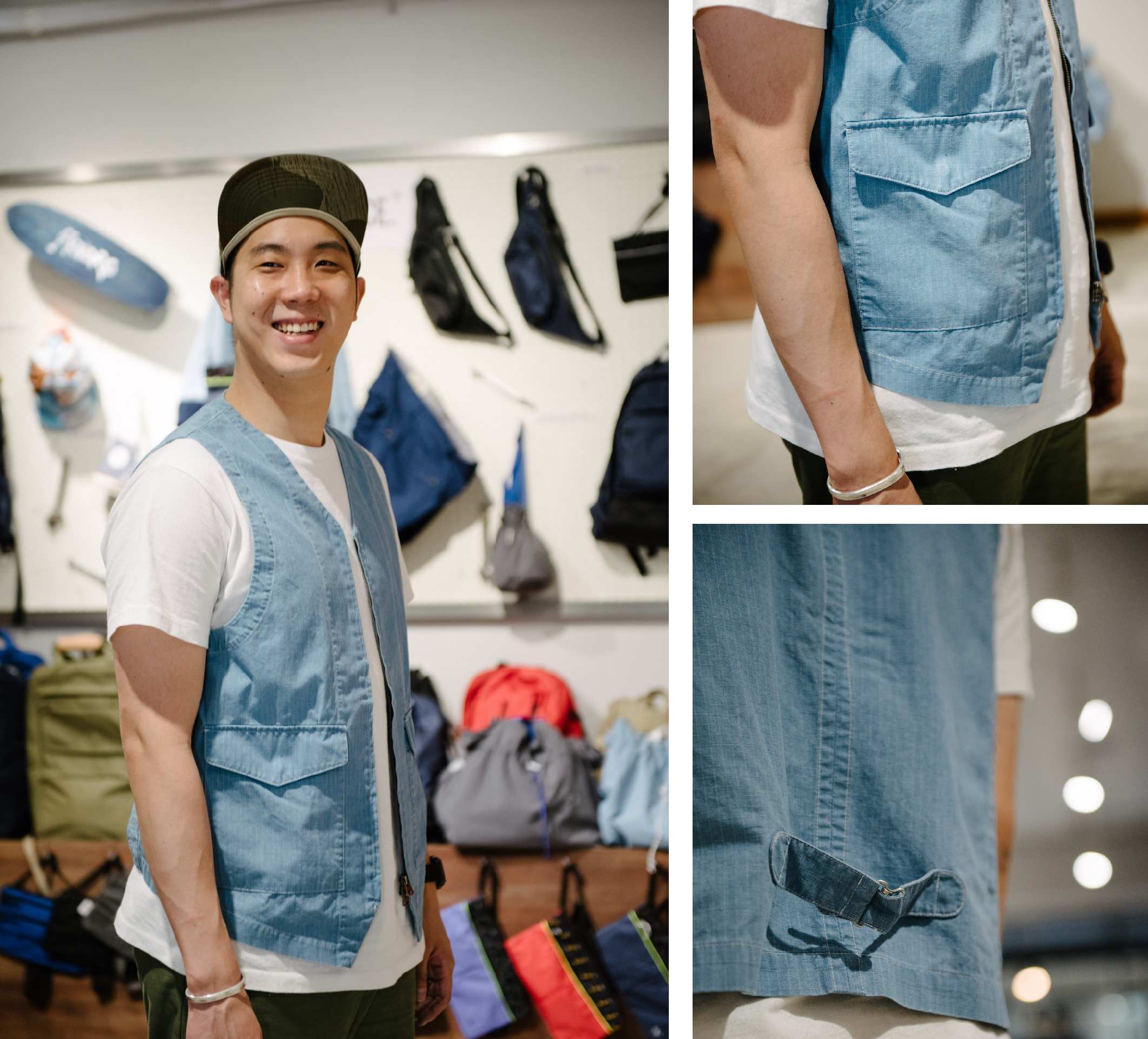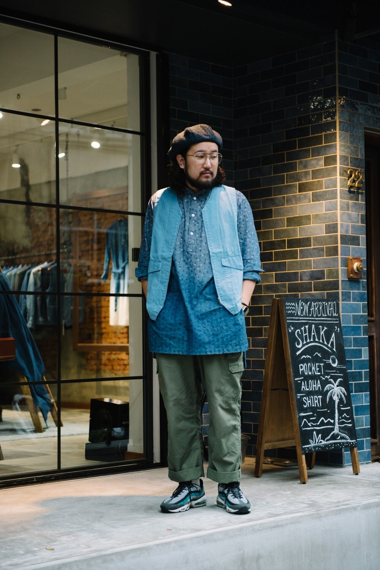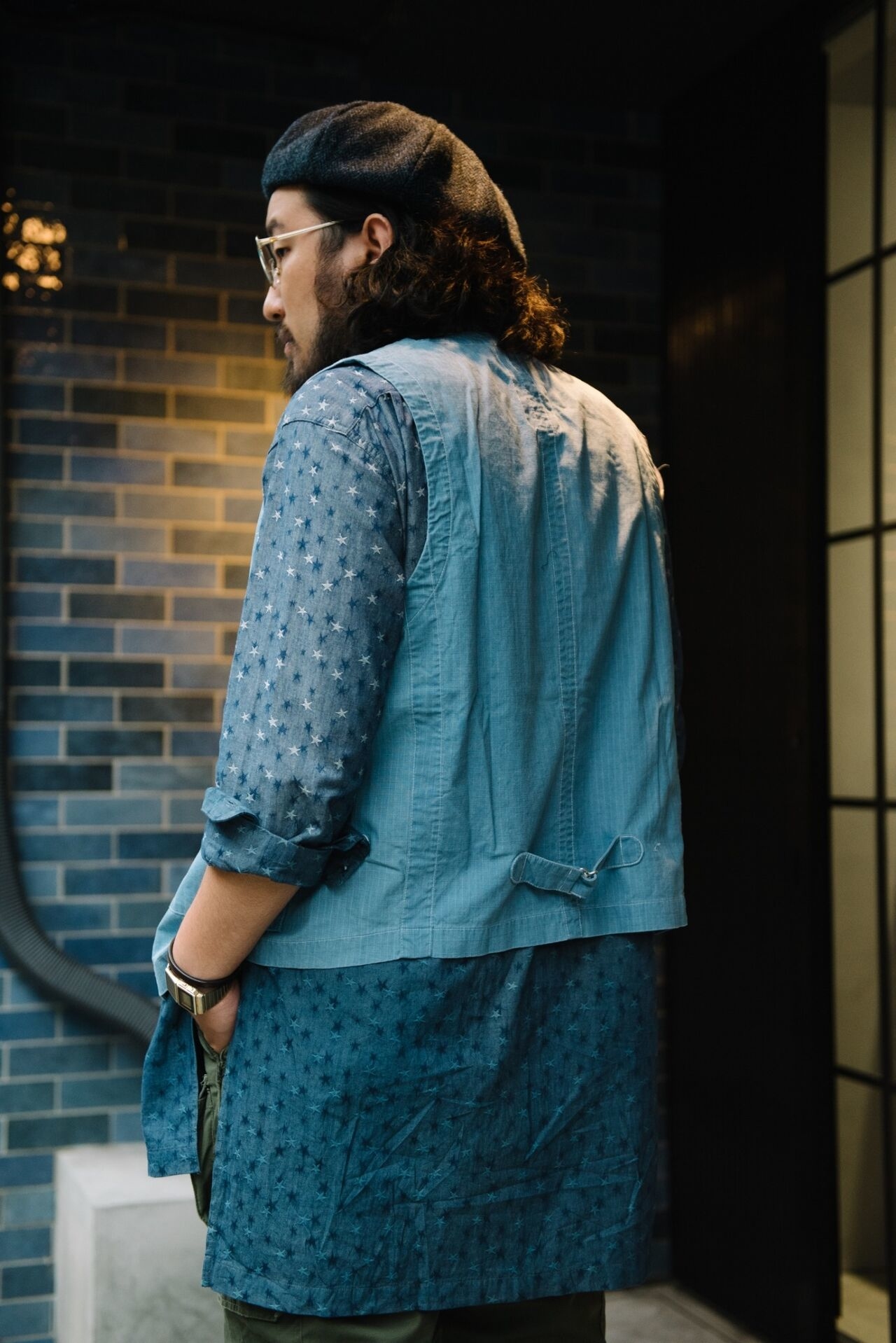 而這件 “COMMANDO” ARMY VEST 使用了抗撕裂布 (ripstop) 面料,平時相當關注軍裝所以常在經典的單品上見到此款布料,而藍染的抗撕裂布是以前從沒看過的,意外地合拍。
