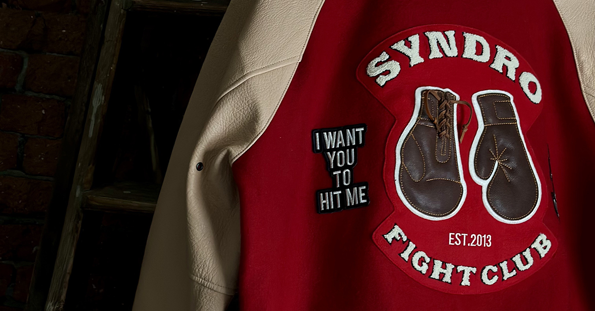 羊皮製的立體拳擊手套,成為背後視覺主軸;內裡印花圖樣再次強調設計主題概念。